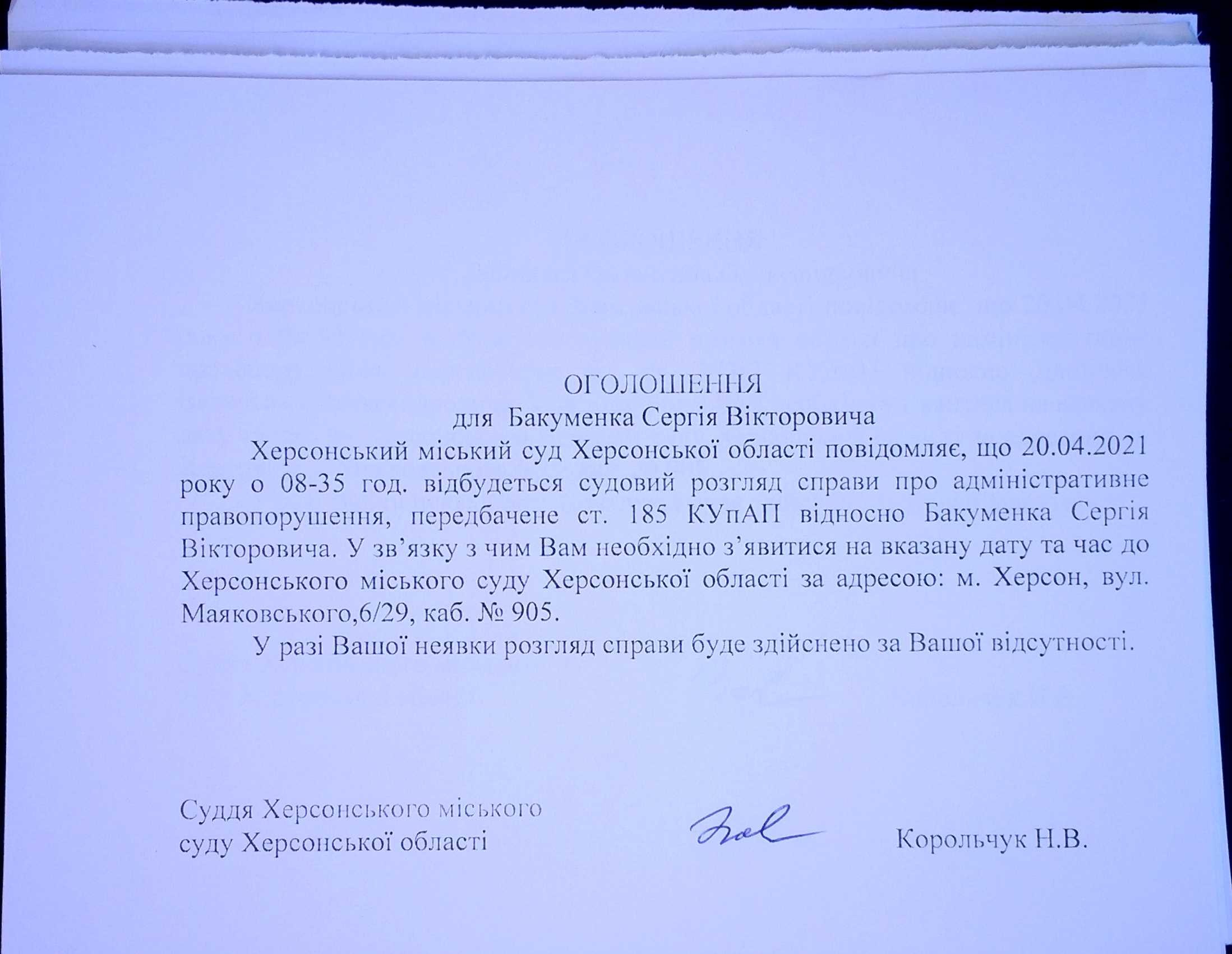ОГОЛОШЕННЯ для Бакуменко Сергія Вікторовича