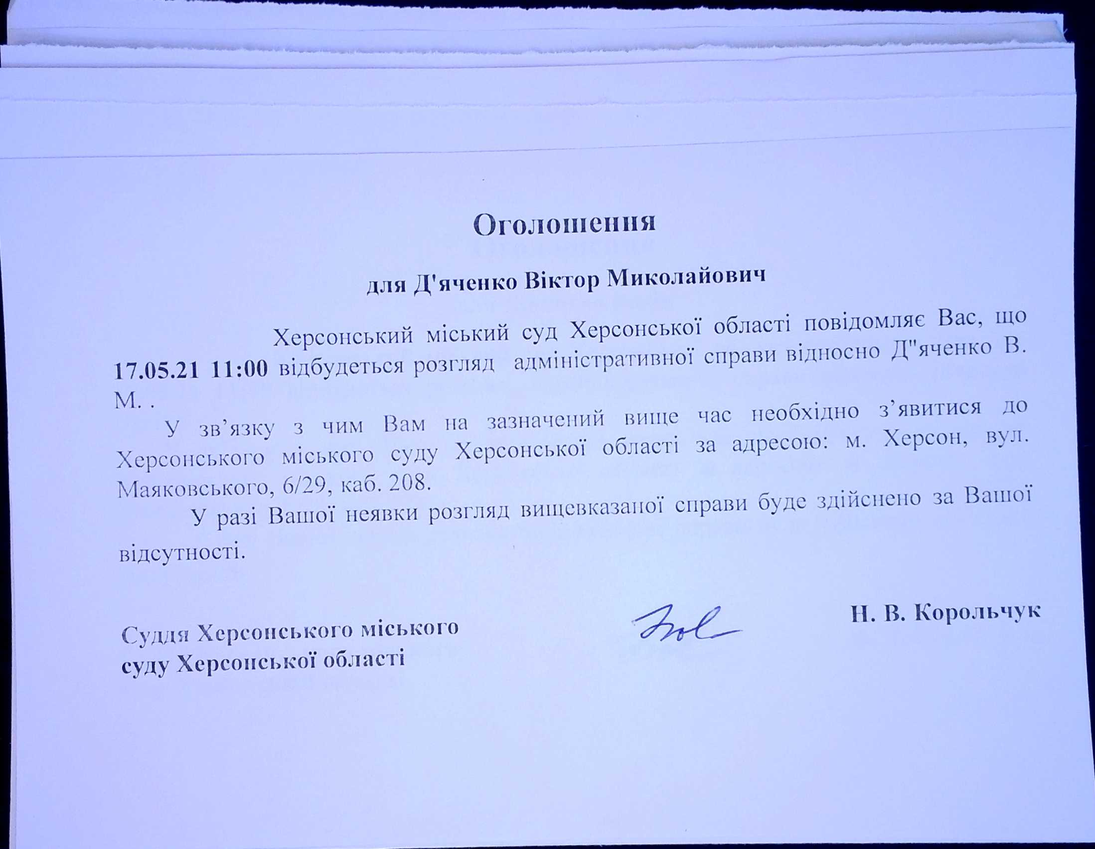 ОГОЛОШЕННЯ ПРО ВИКЛИК ДО СУДУ