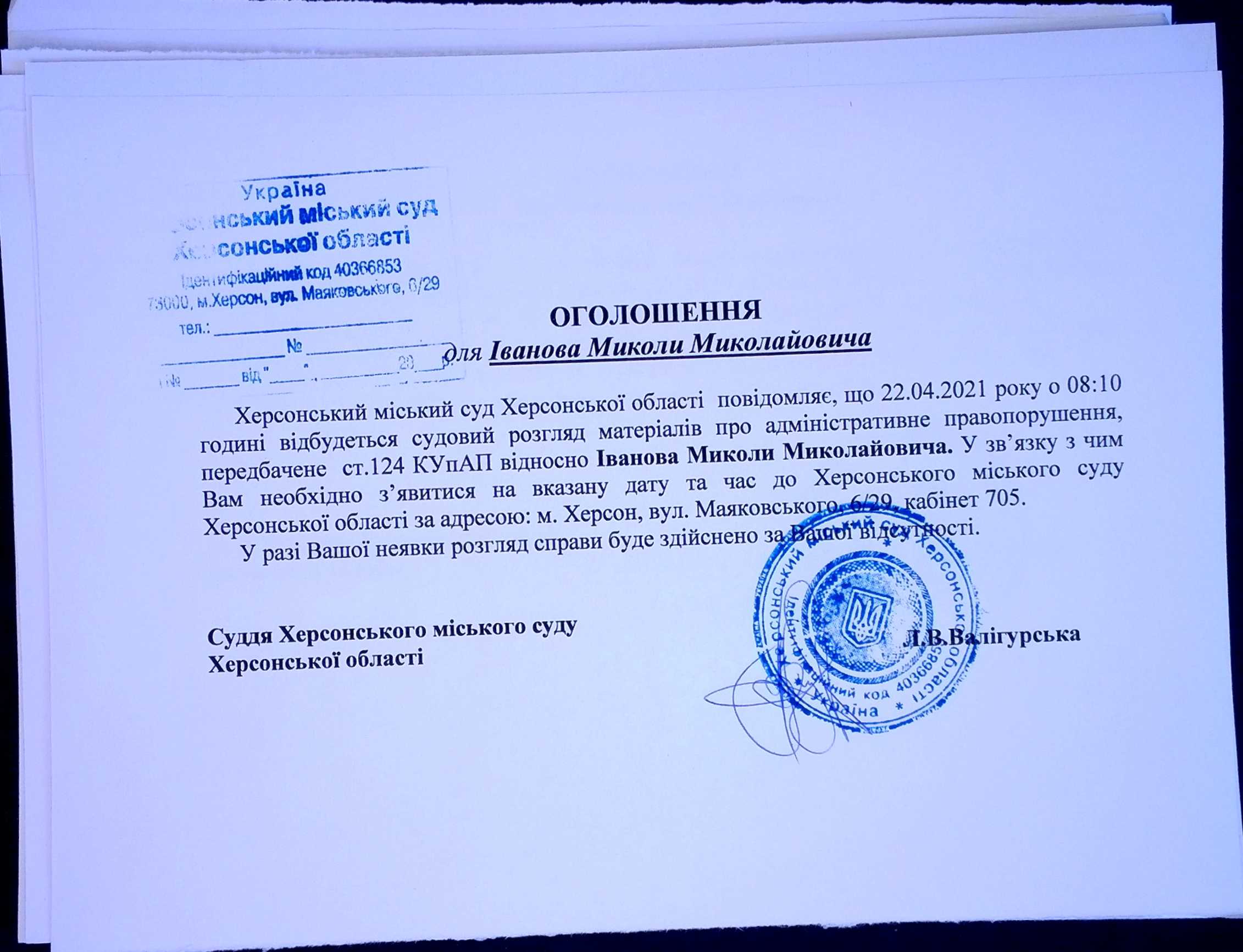 ОГОЛОШЕННЯ для Іванова Миколи Миколайовича
