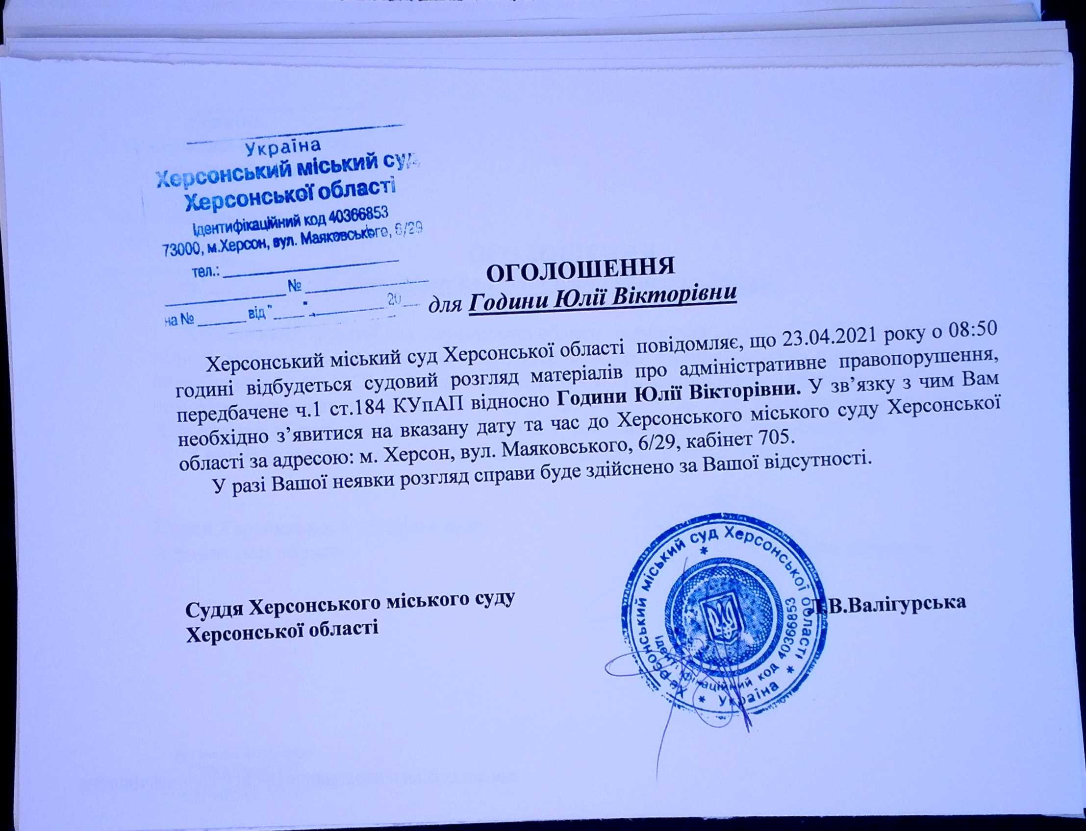 ОГОЛОШЕННЯ ПРО ВИКЛИК ДО СУДУ