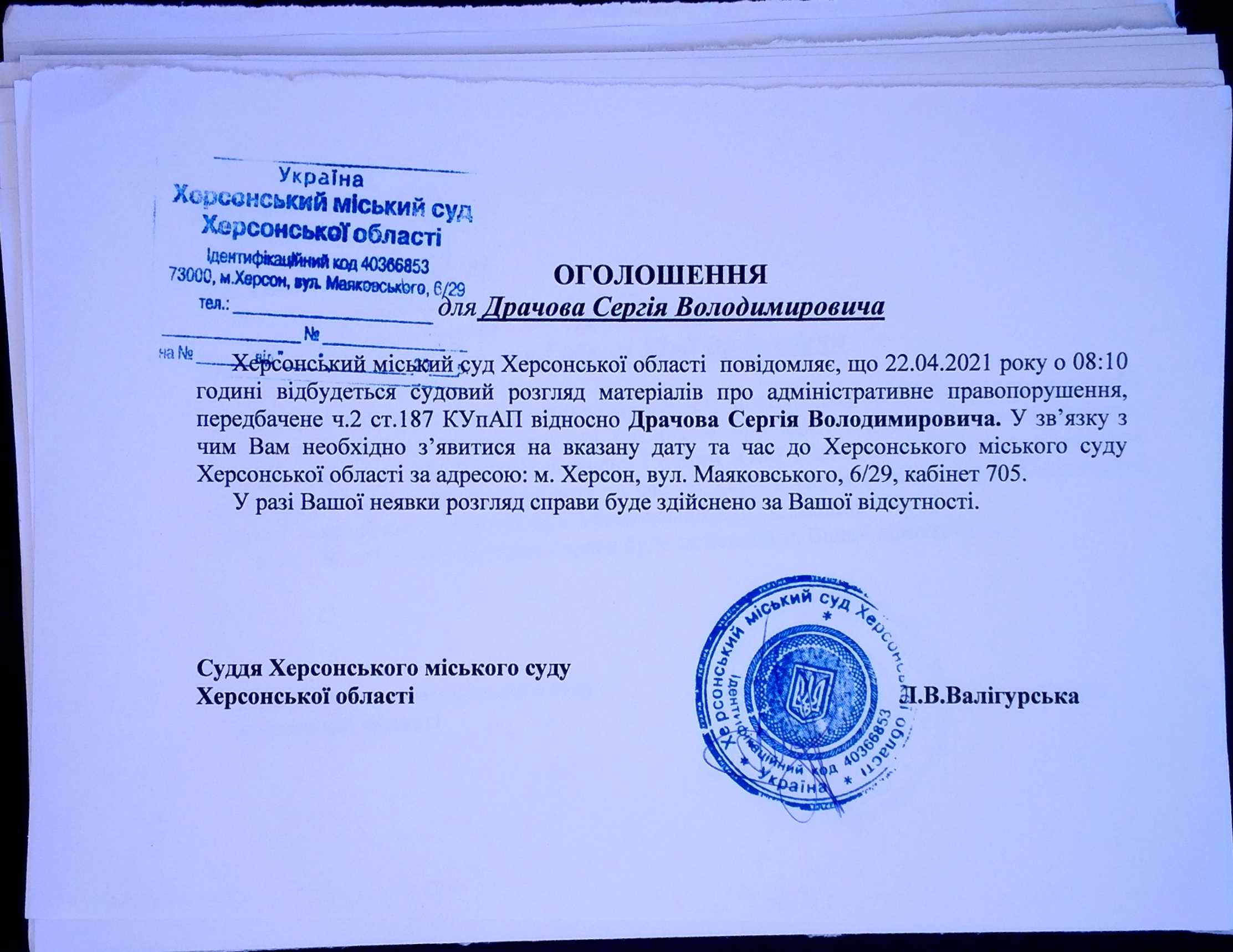 ОГОЛОШЕННЯ для Драчова Сергія Володимировича