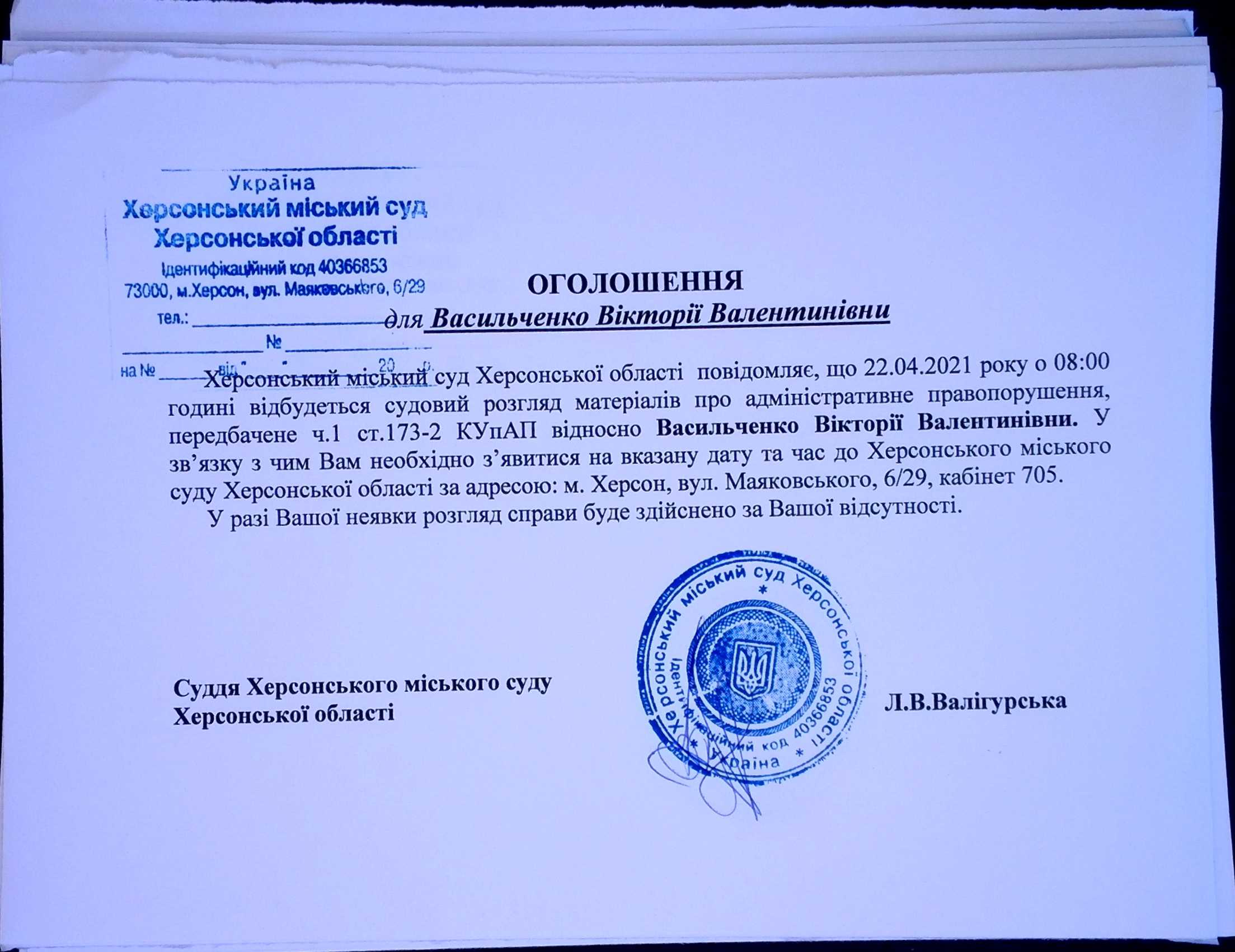 ОГОЛОШЕННЯ для Васильченко Вікторії Валентинівни