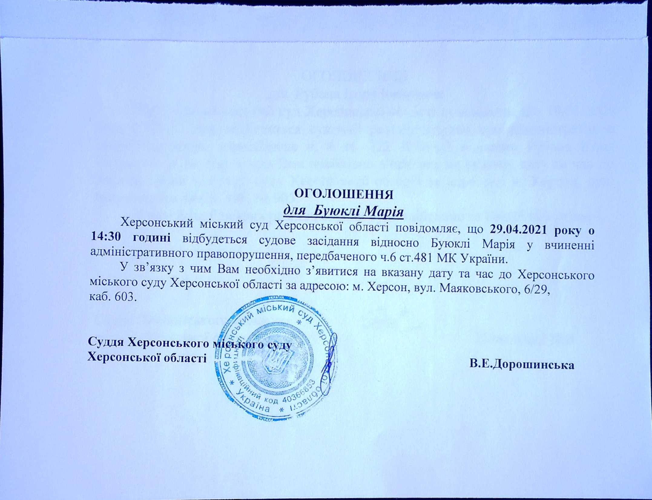 ОГОЛОШЕННЯ ПРО ВИКЛИК ДО СУДУ