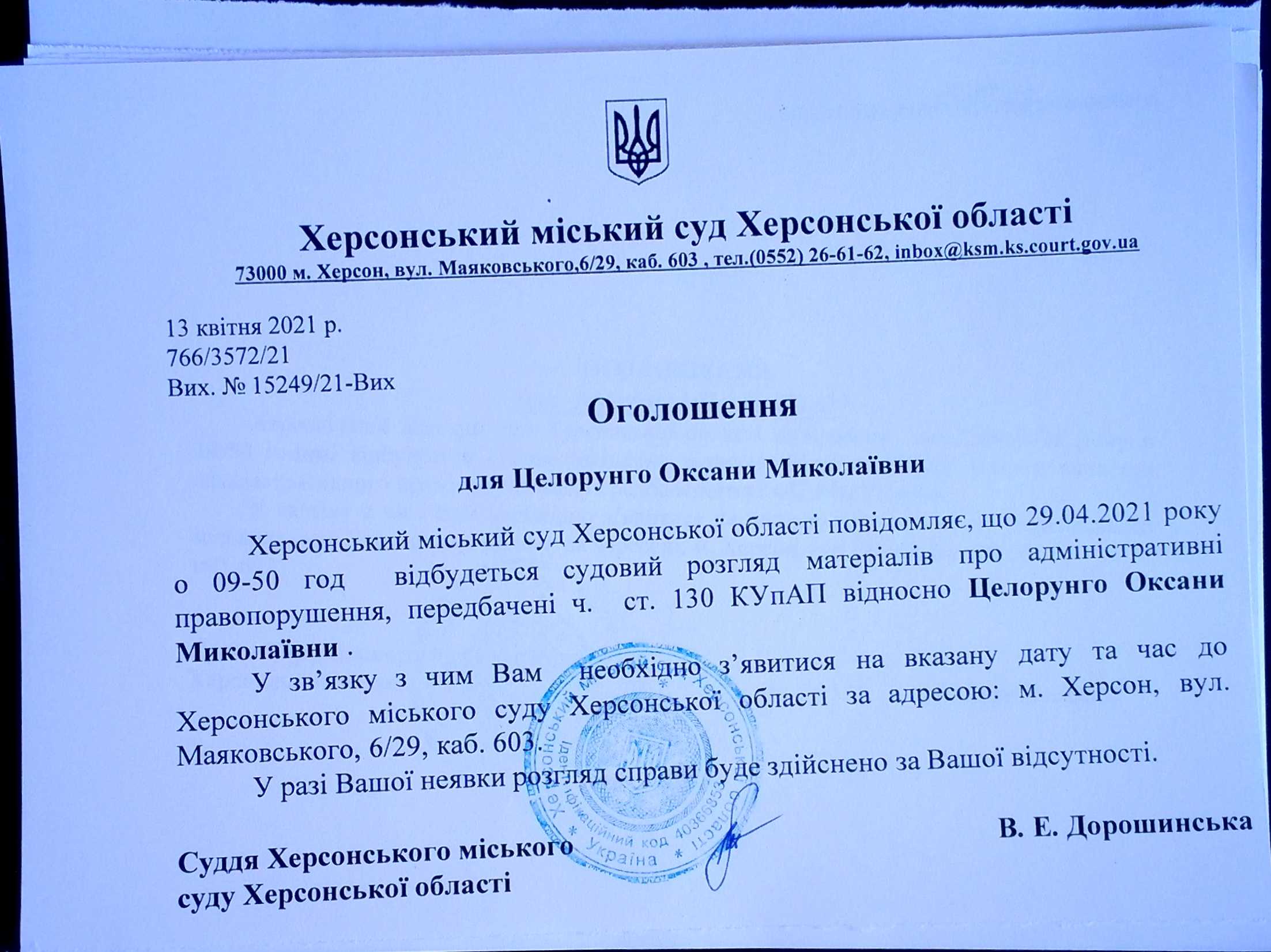 ОГОЛОШЕННЯ ПРО ВИКЛИК ДО СУДУ
