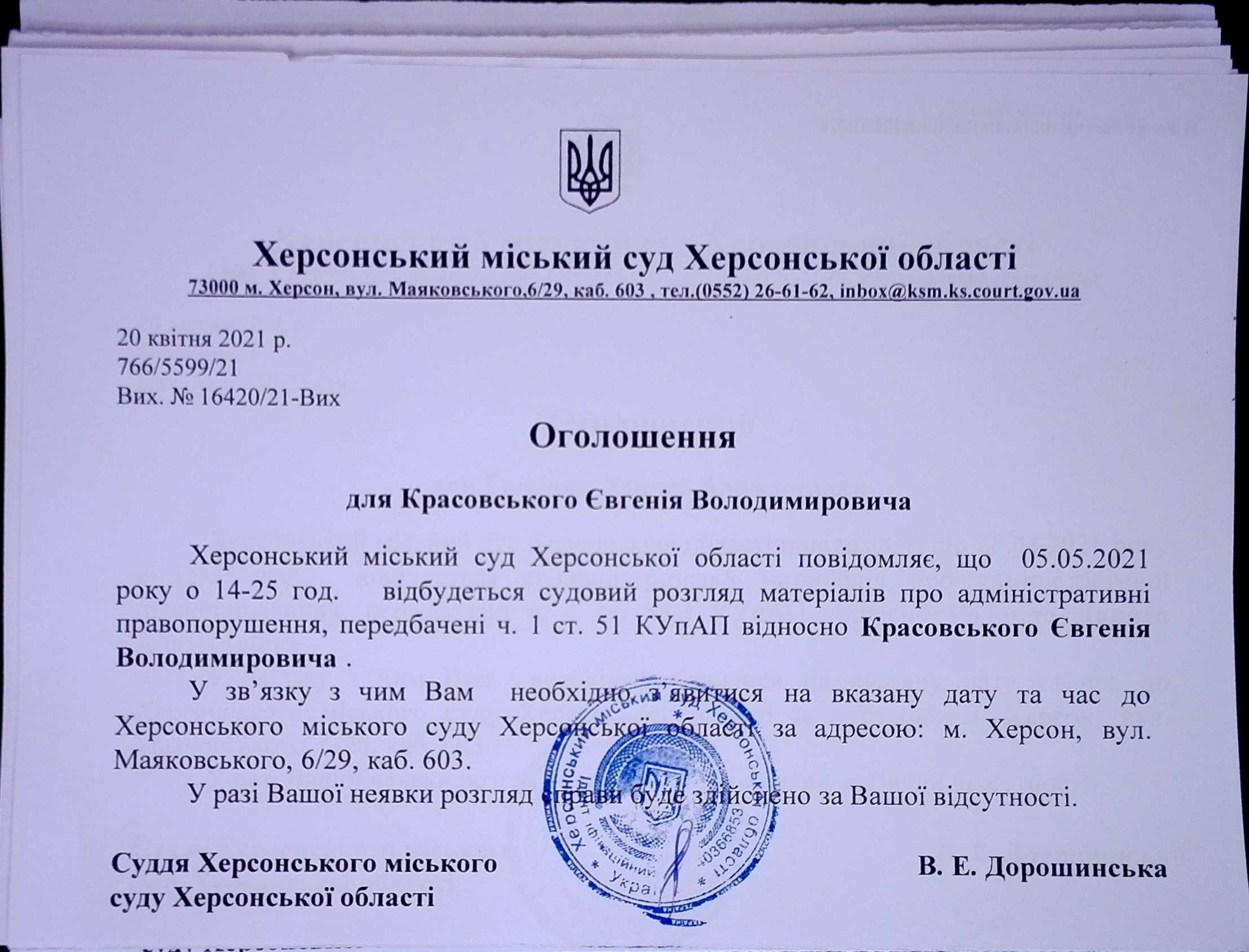 ОГОЛОШЕННЯ для Красовського Євгенія Володимировича