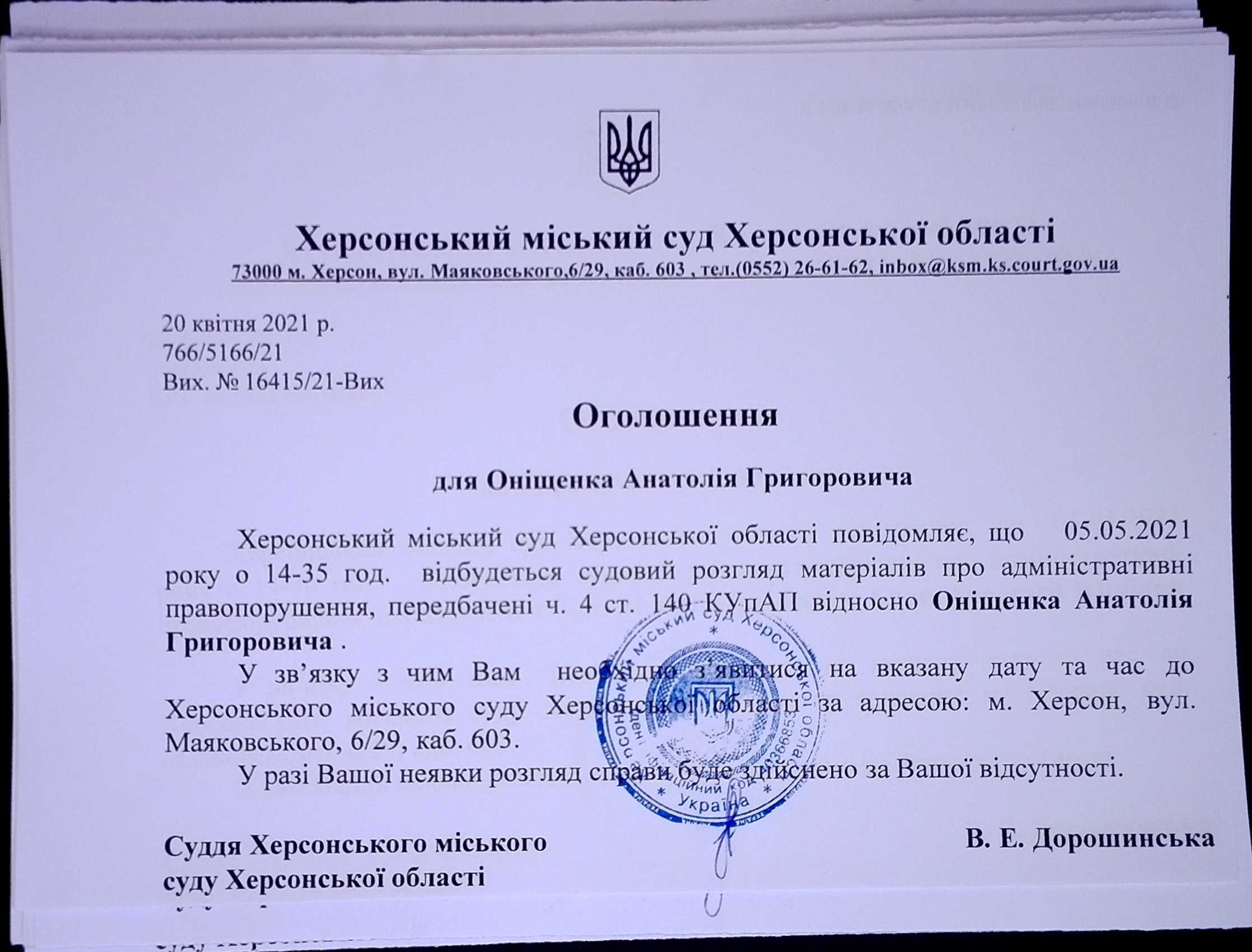 ОГОЛОШЕННЯ для Оніщенка Анатолія Григоровича