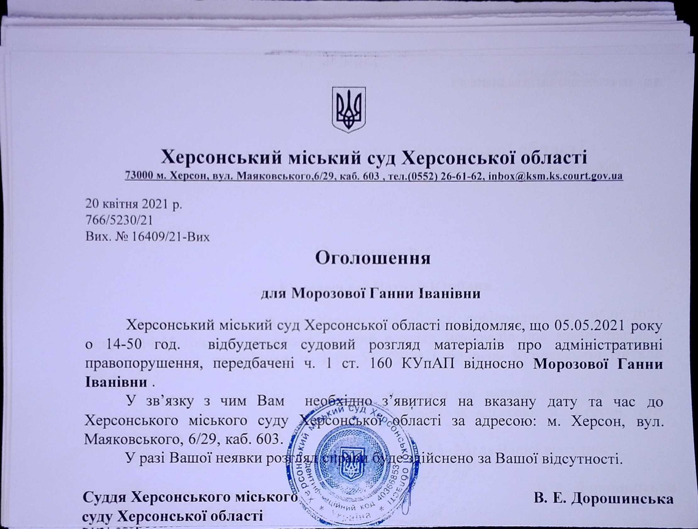 ОГОЛОШЕННЯ для Морозової Ганни Іванівни
