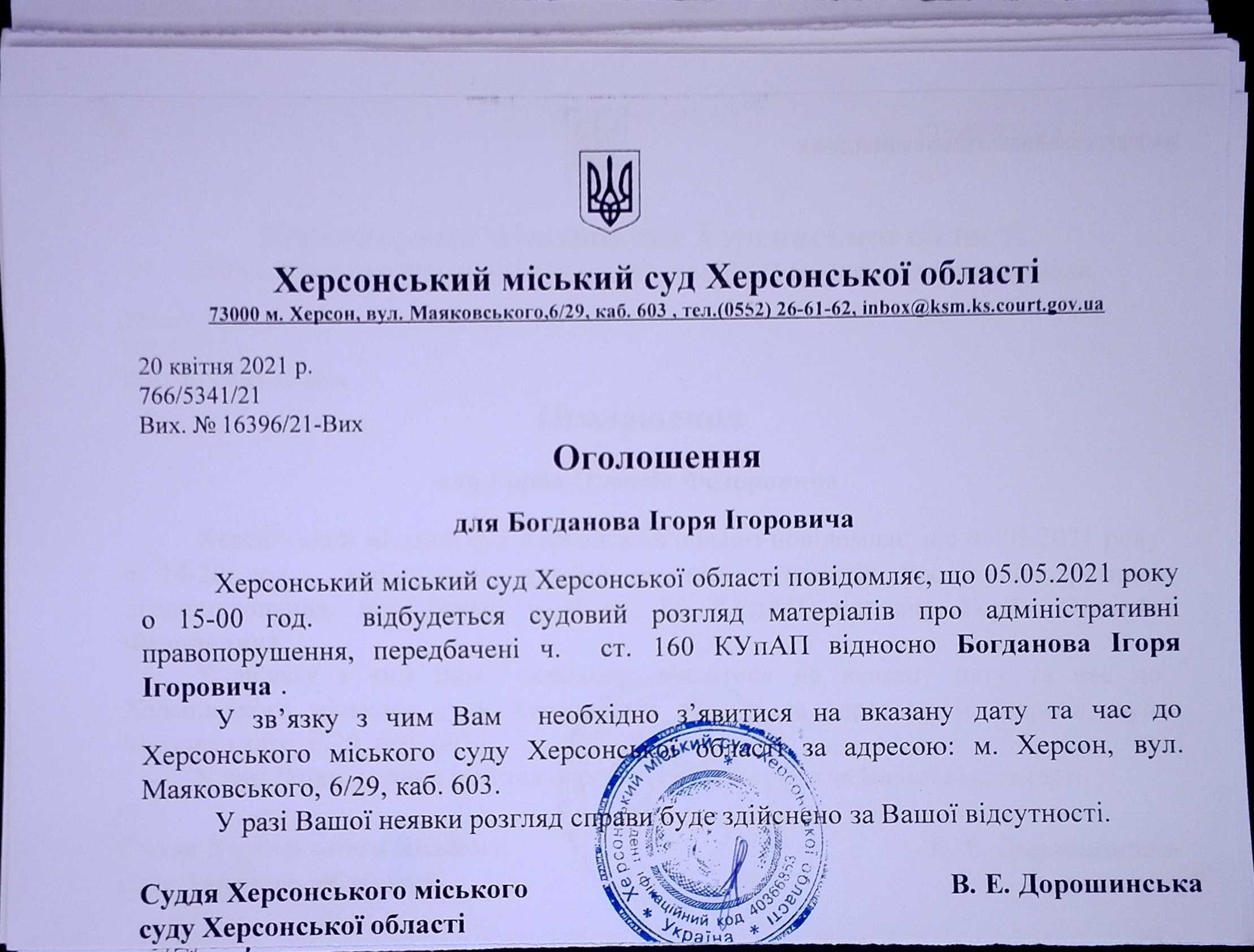 ОГОЛОШЕННЯ для Богданова Ігоря Ігоровича