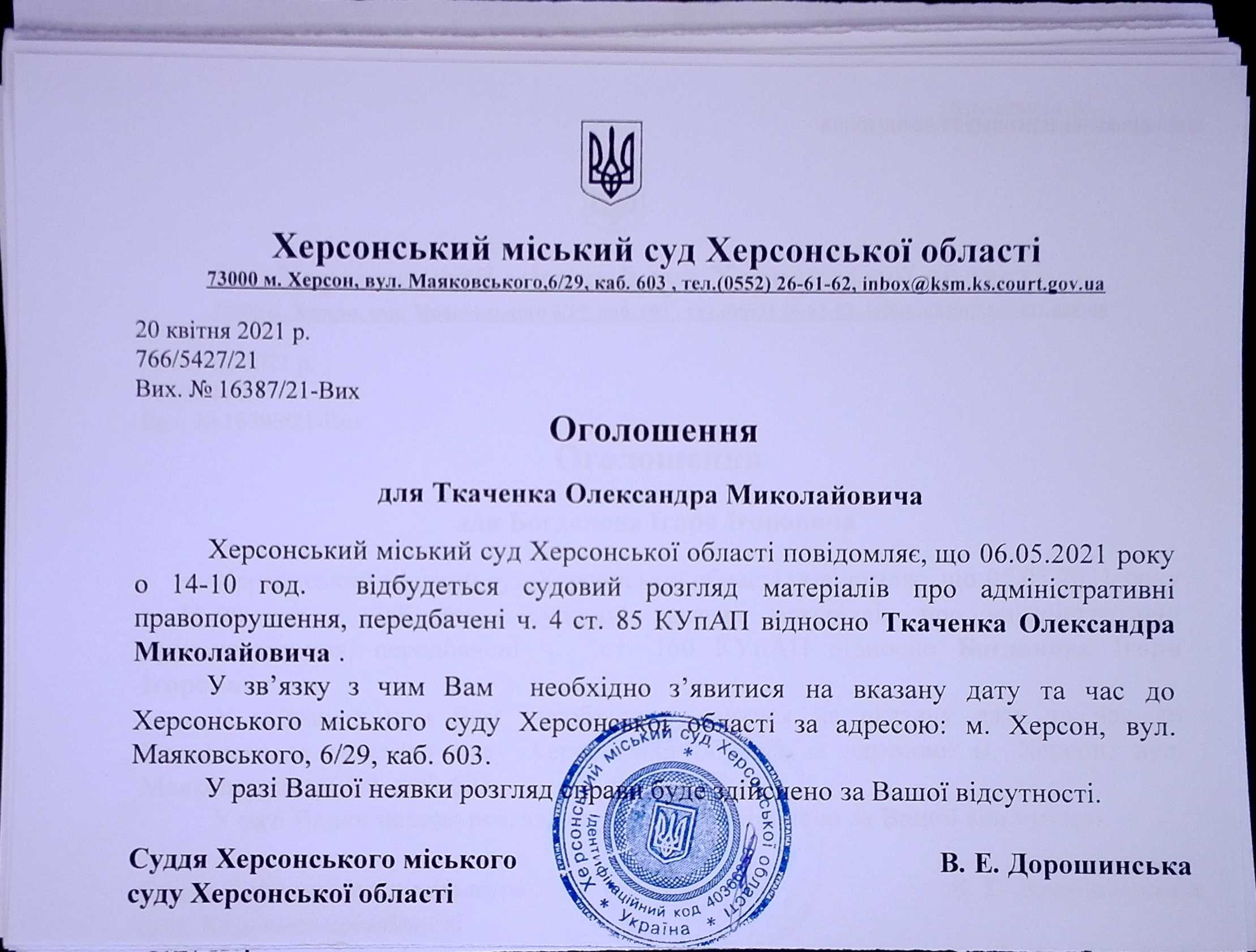 ОГОЛОШЕННЯ ПРО ВИКЛИК ДО СУДУ