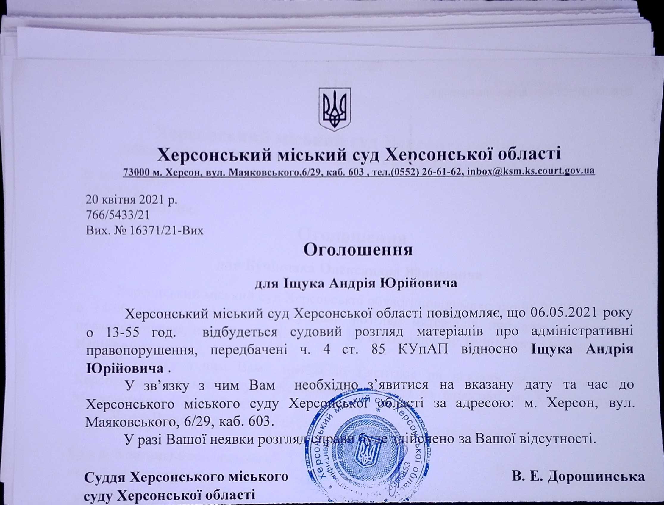 ОГОЛОШЕННЯ ПРО ВИКЛИК ДО СУДУ