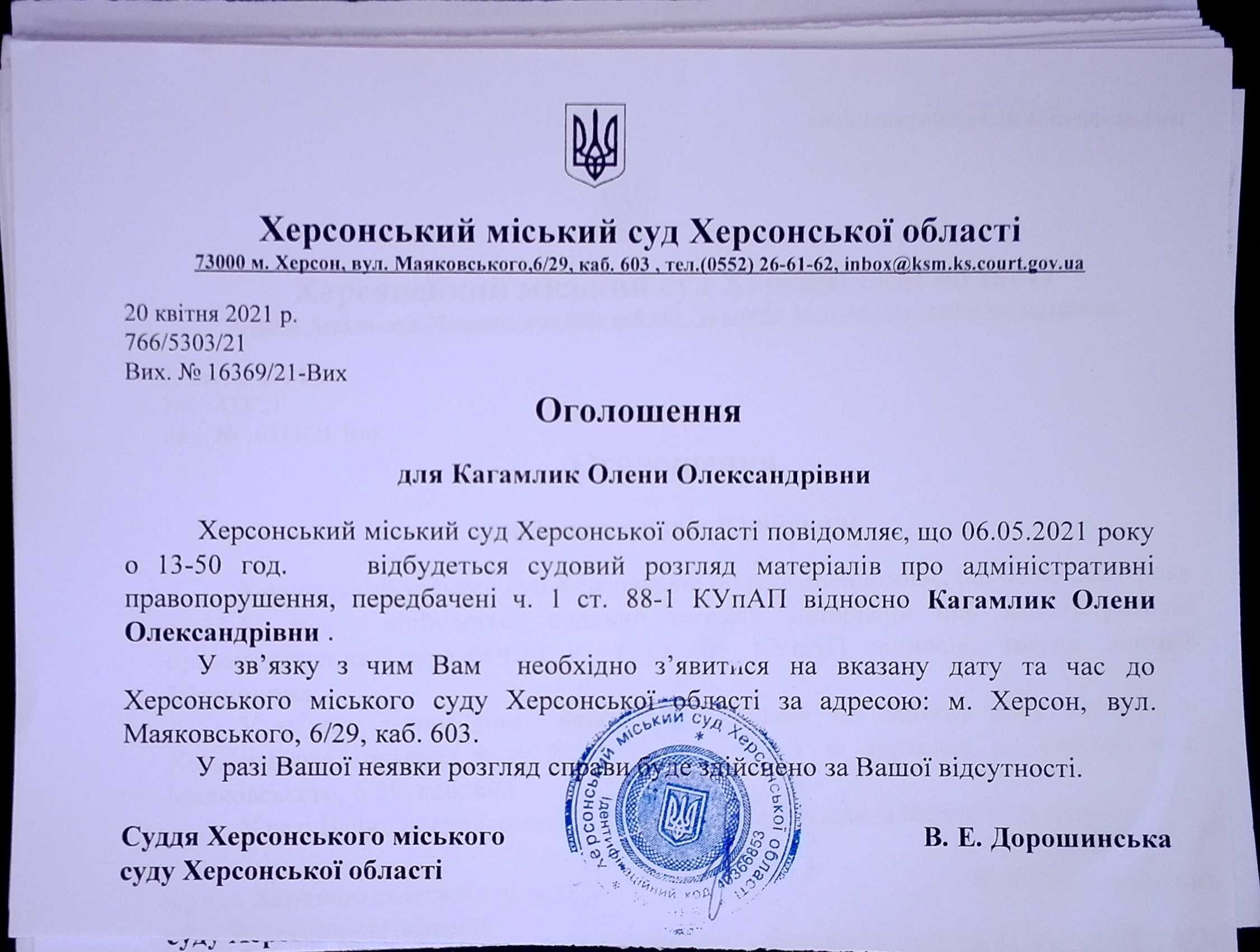 ОГОЛОШЕННЯ для Кагамлик Олени Олександрівни