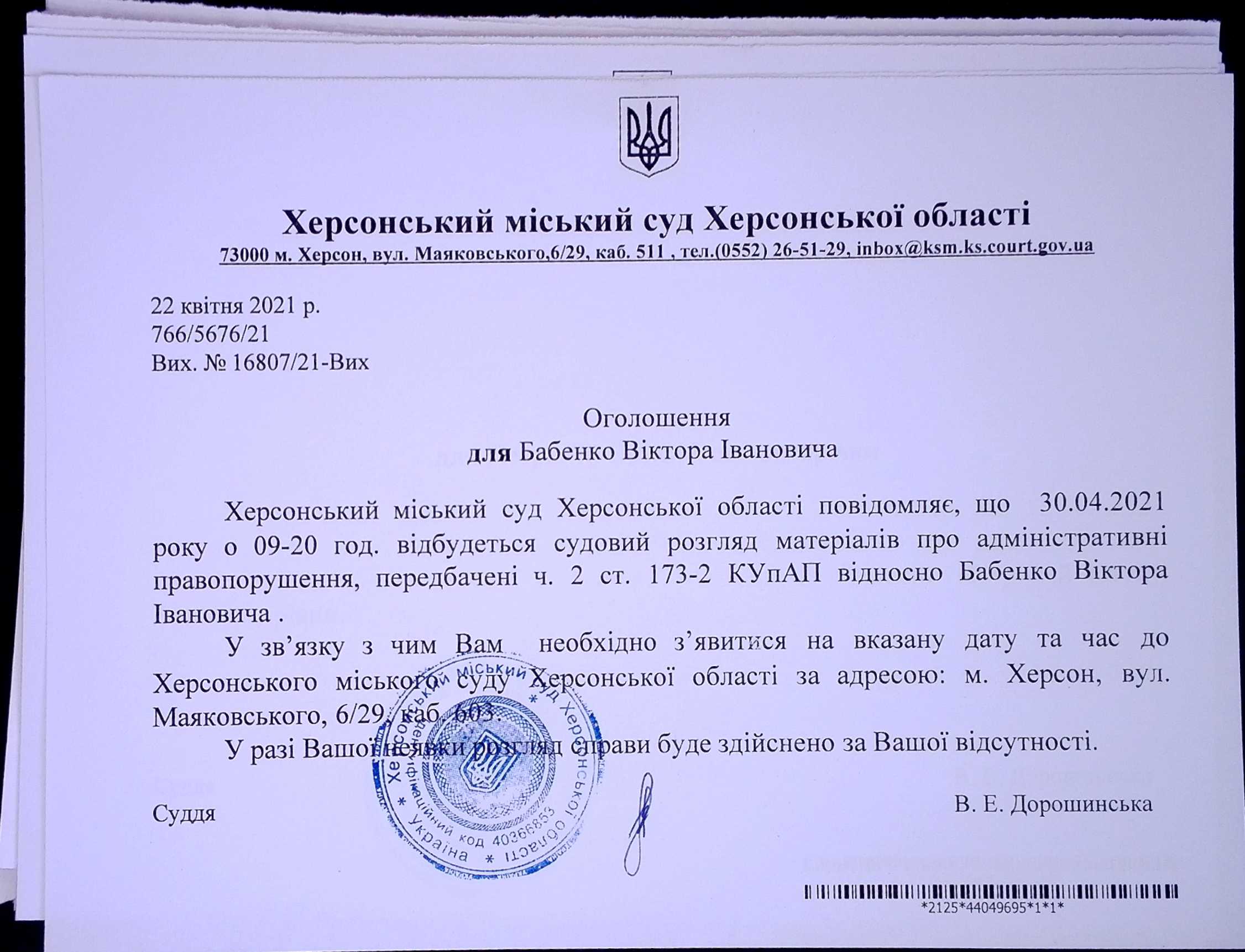 ОГОЛОШЕННЯ для Бабенко Віктора Івановича