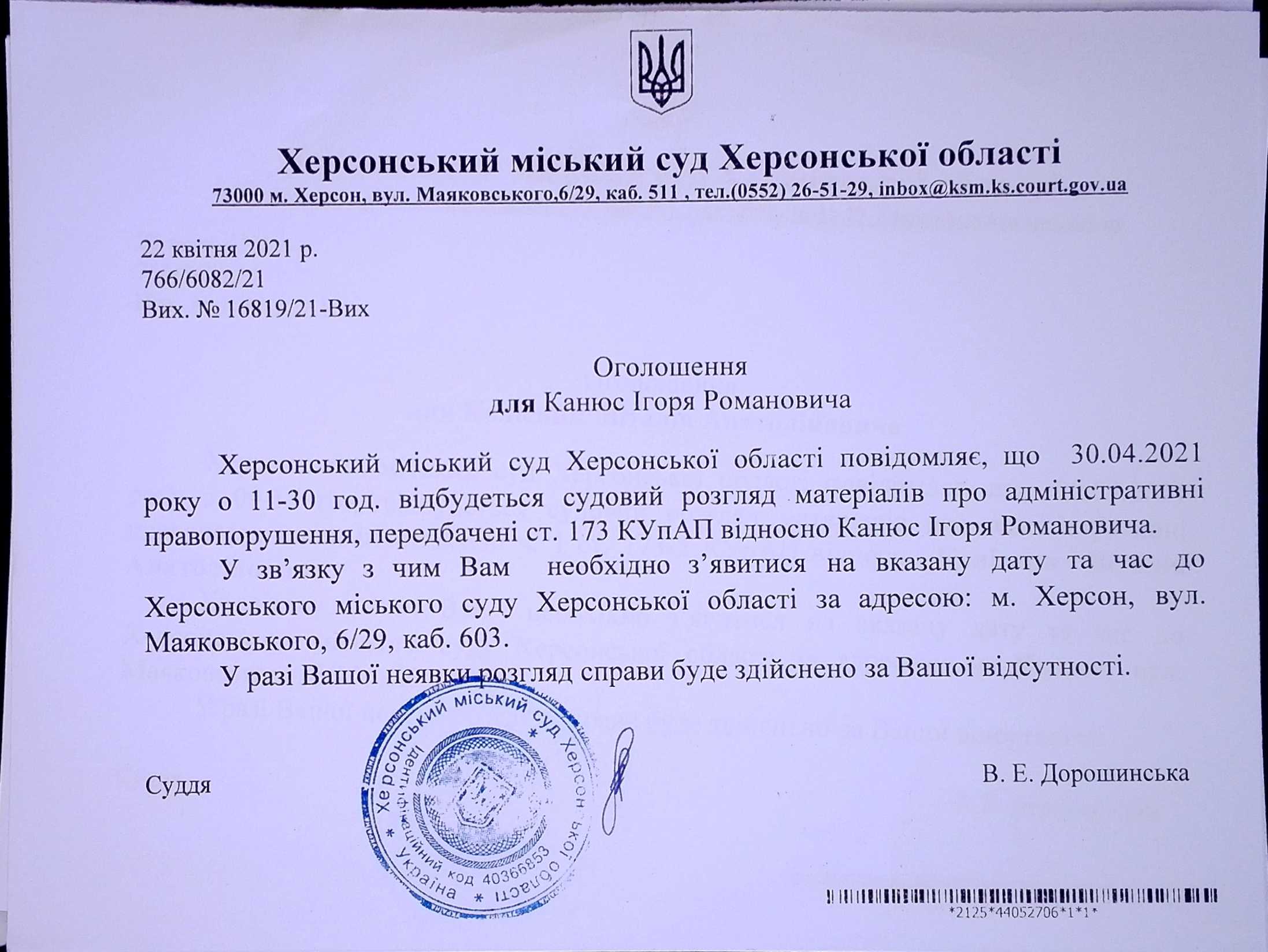 ОГОЛОШЕННЯ для Канюс Ігоря Романовича