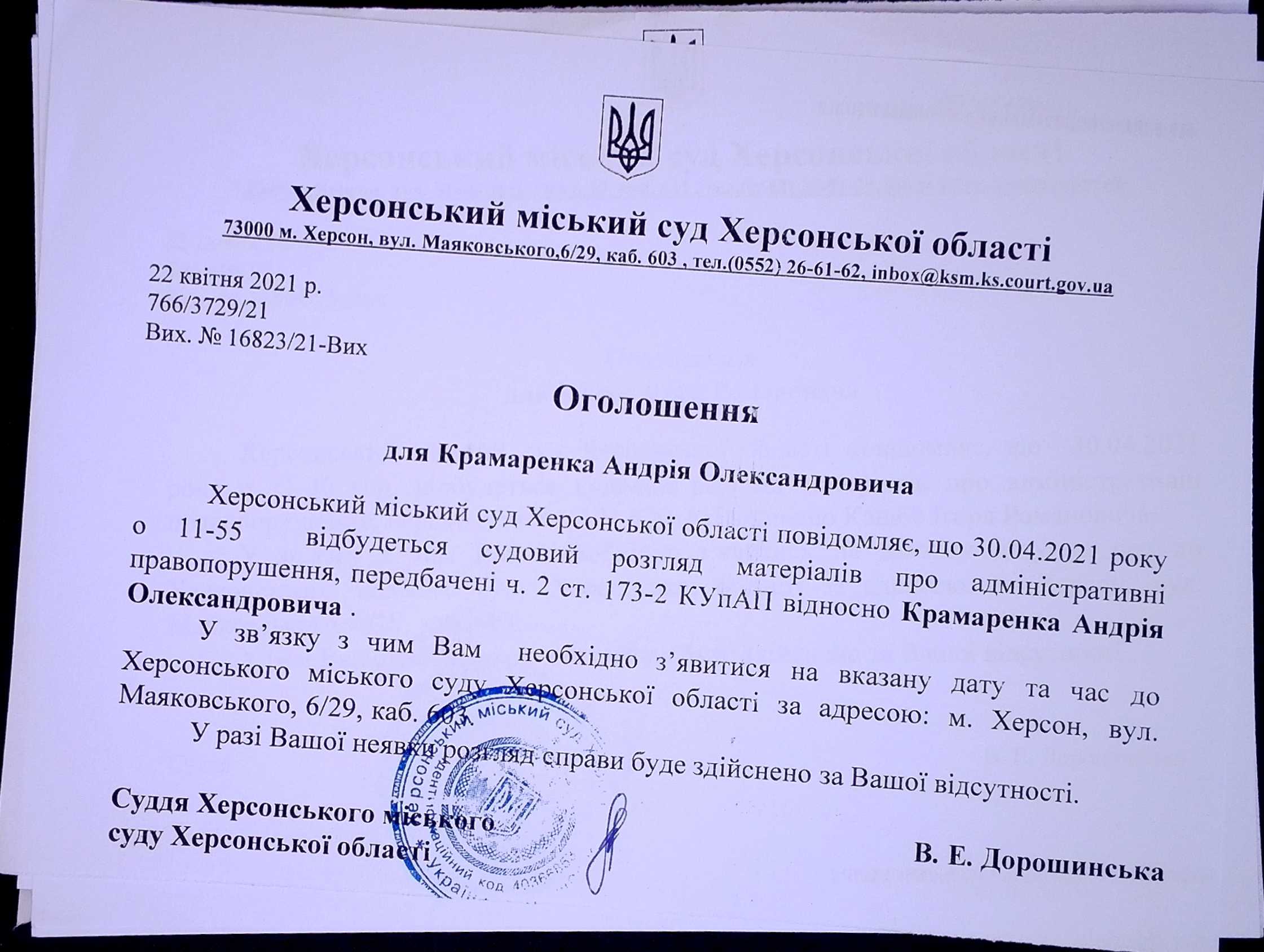 ОГОЛОШЕННЯ для Крамаренка Андрія Олександровича