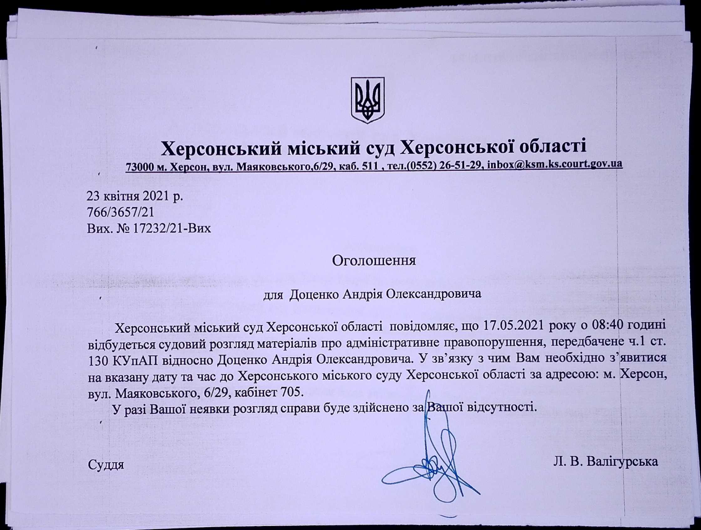 ОГОЛОШЕННЯ для Доценко Андрія Олександровича