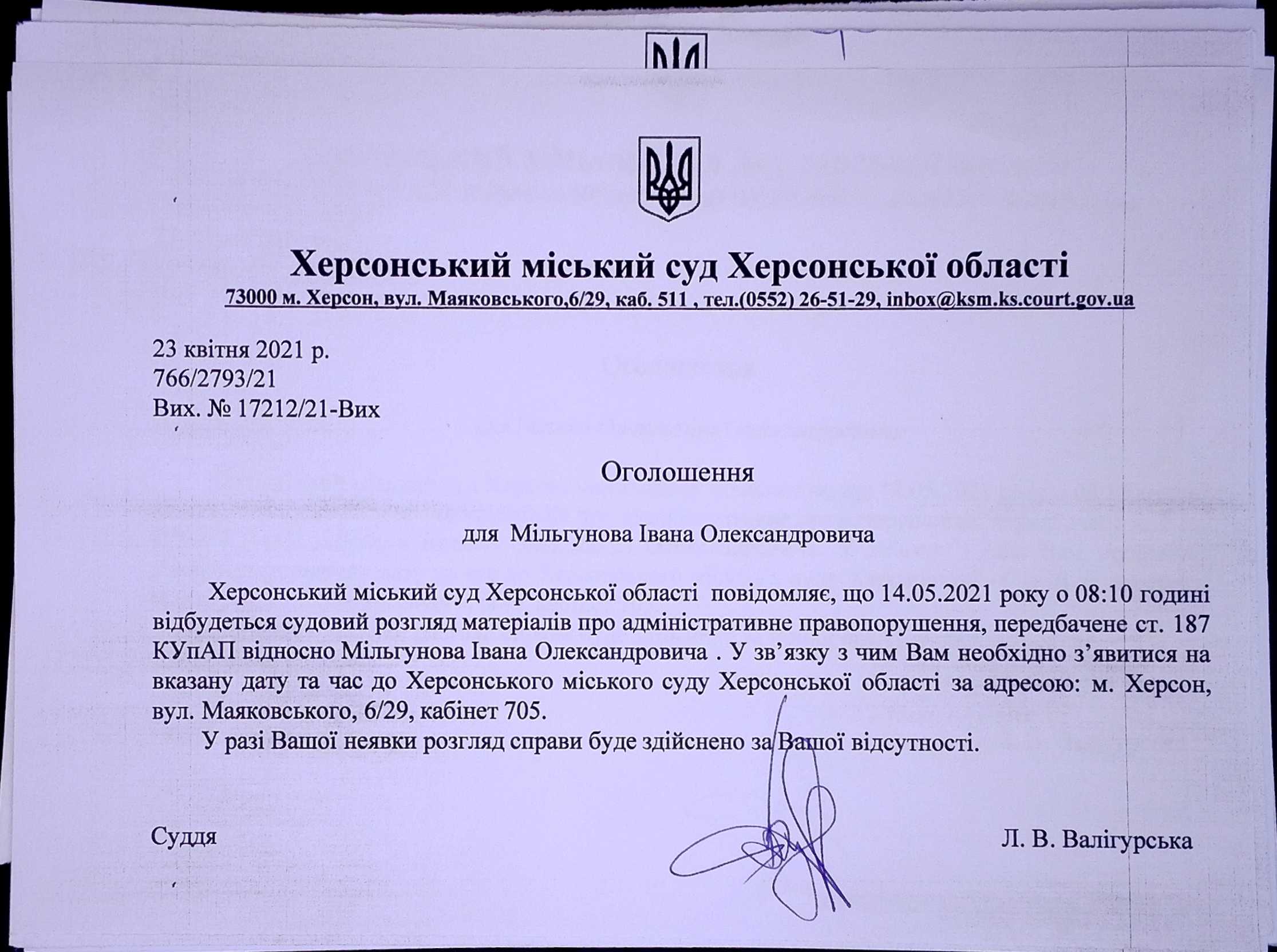 ОГОЛОШЕННЯ для Мільгунова Івана Олександровича