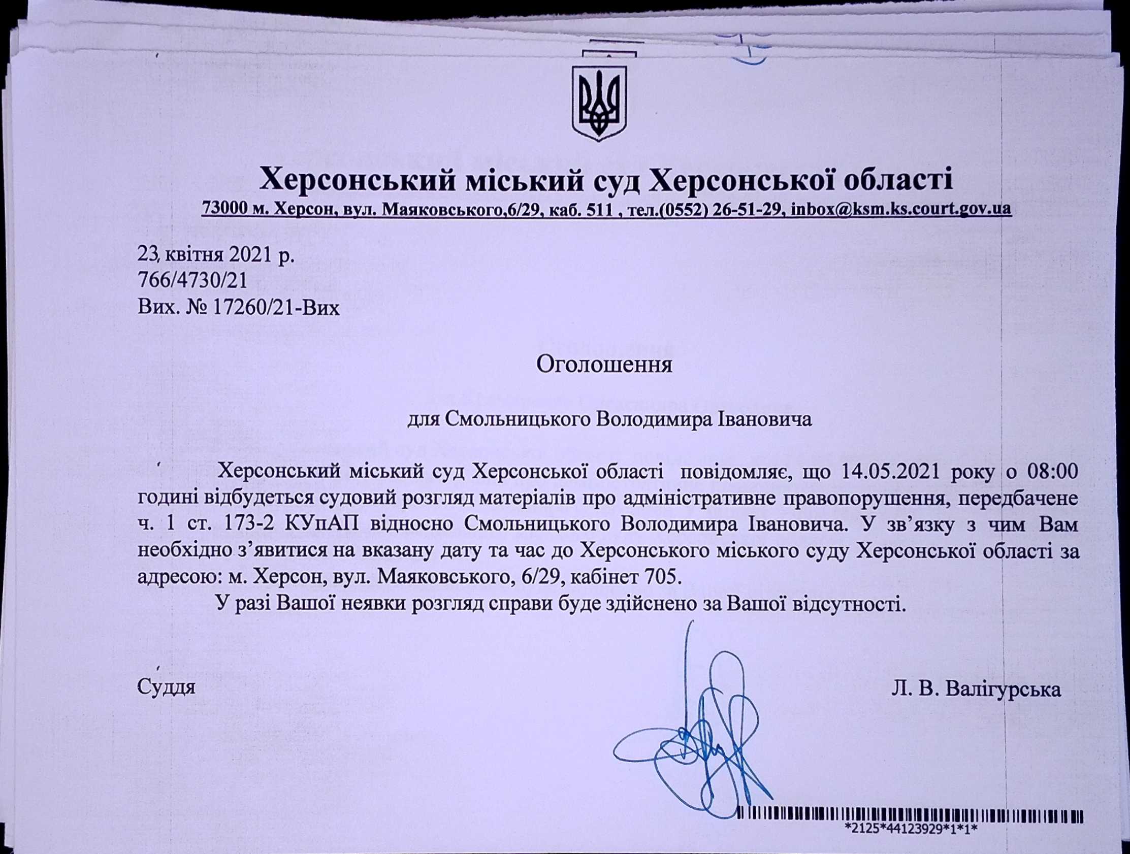 ОГОЛОШЕННЯ для Смольницького Володимира Івановича