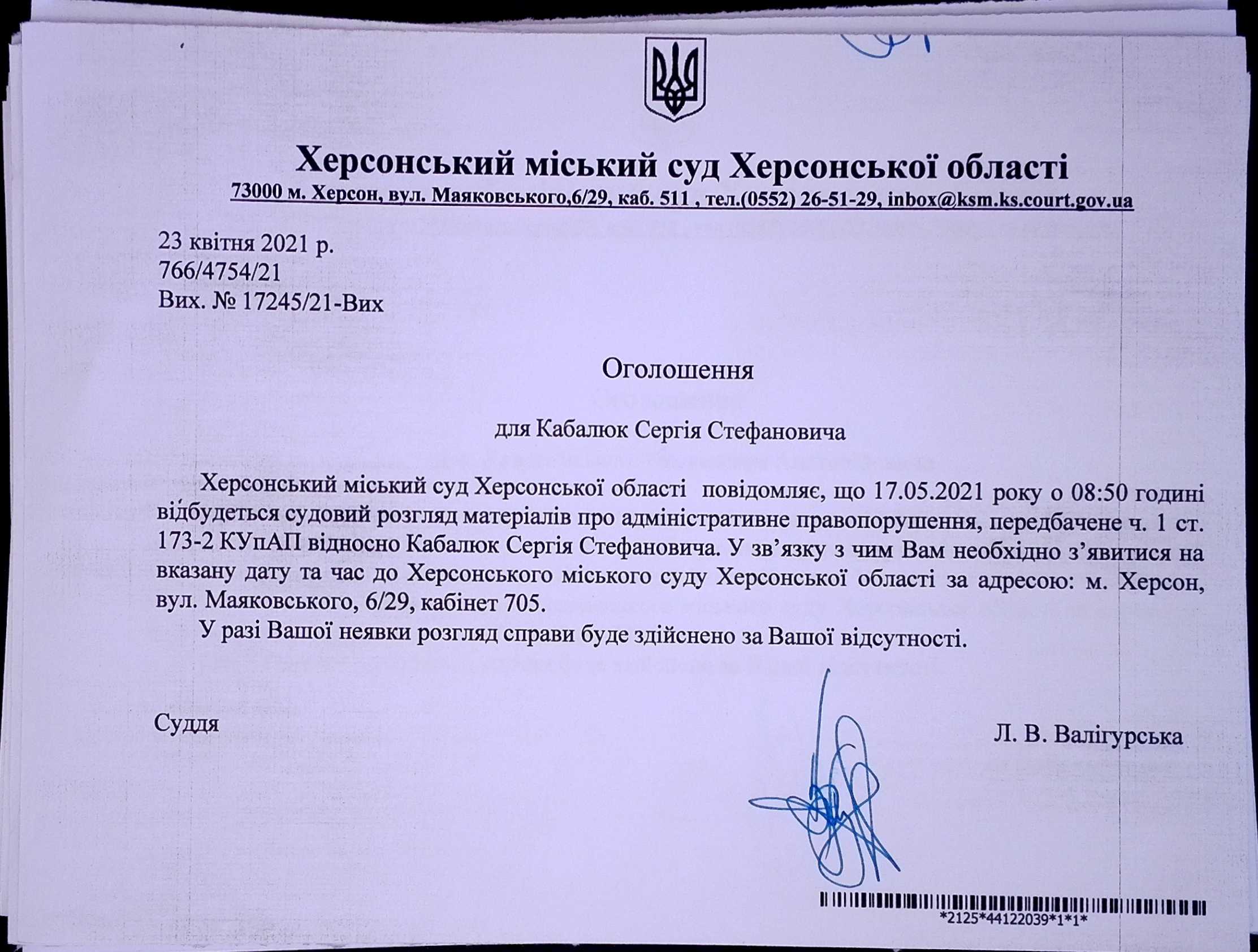 ОГОЛОШЕННЯ ПРО ВИКЛИК ДО СУДУ