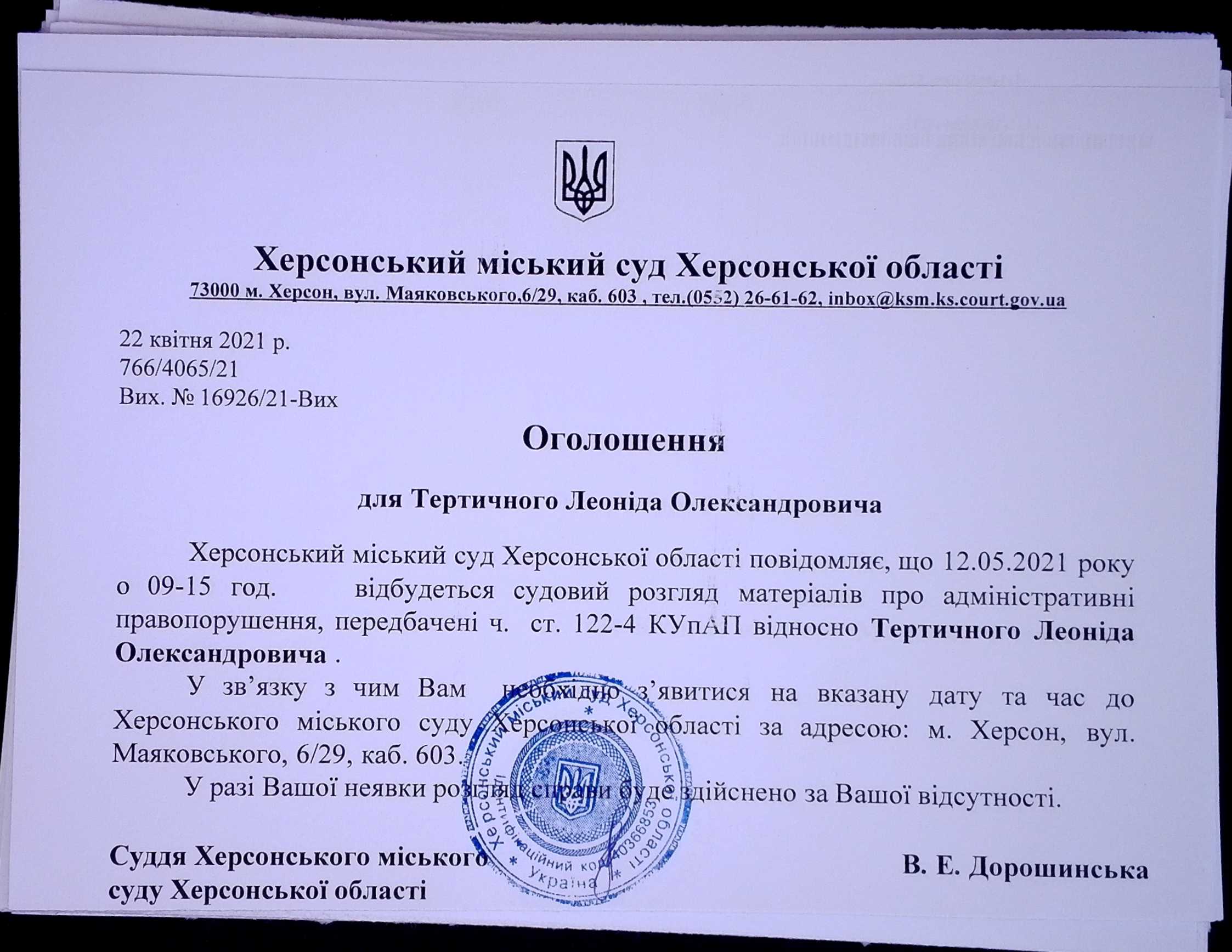 ОГОЛОШЕННЯ для Тертичного Леоніда Олександровича