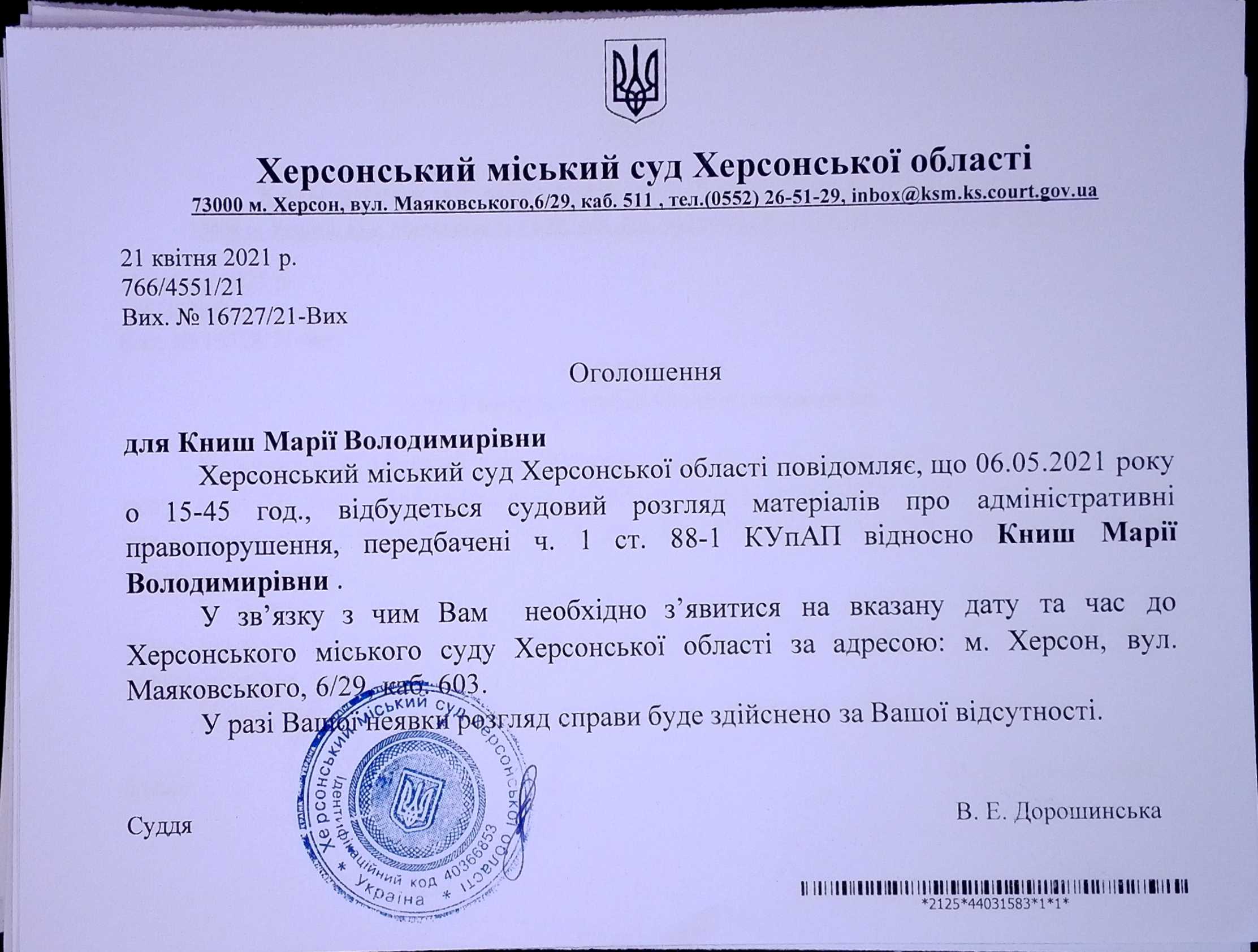 ОГОЛОШЕННЯ для Книш Марії Володимирівни