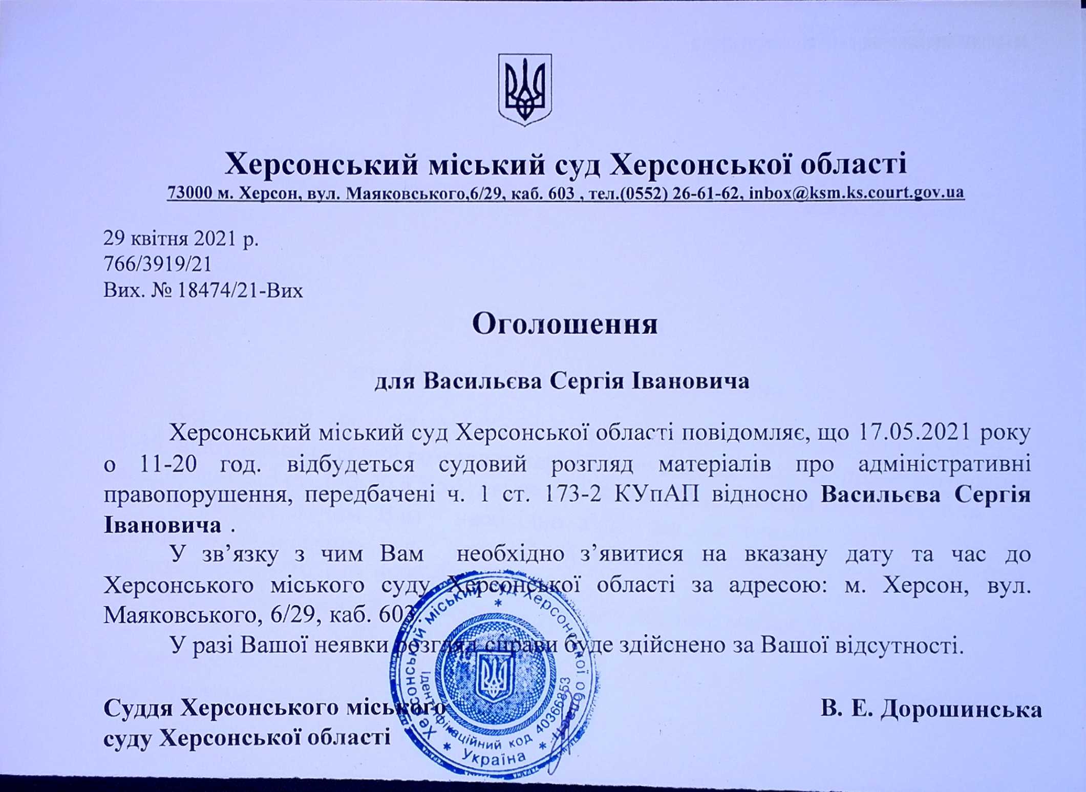 ОГОЛОШЕННЯ для Васильєва Сергія Івановича