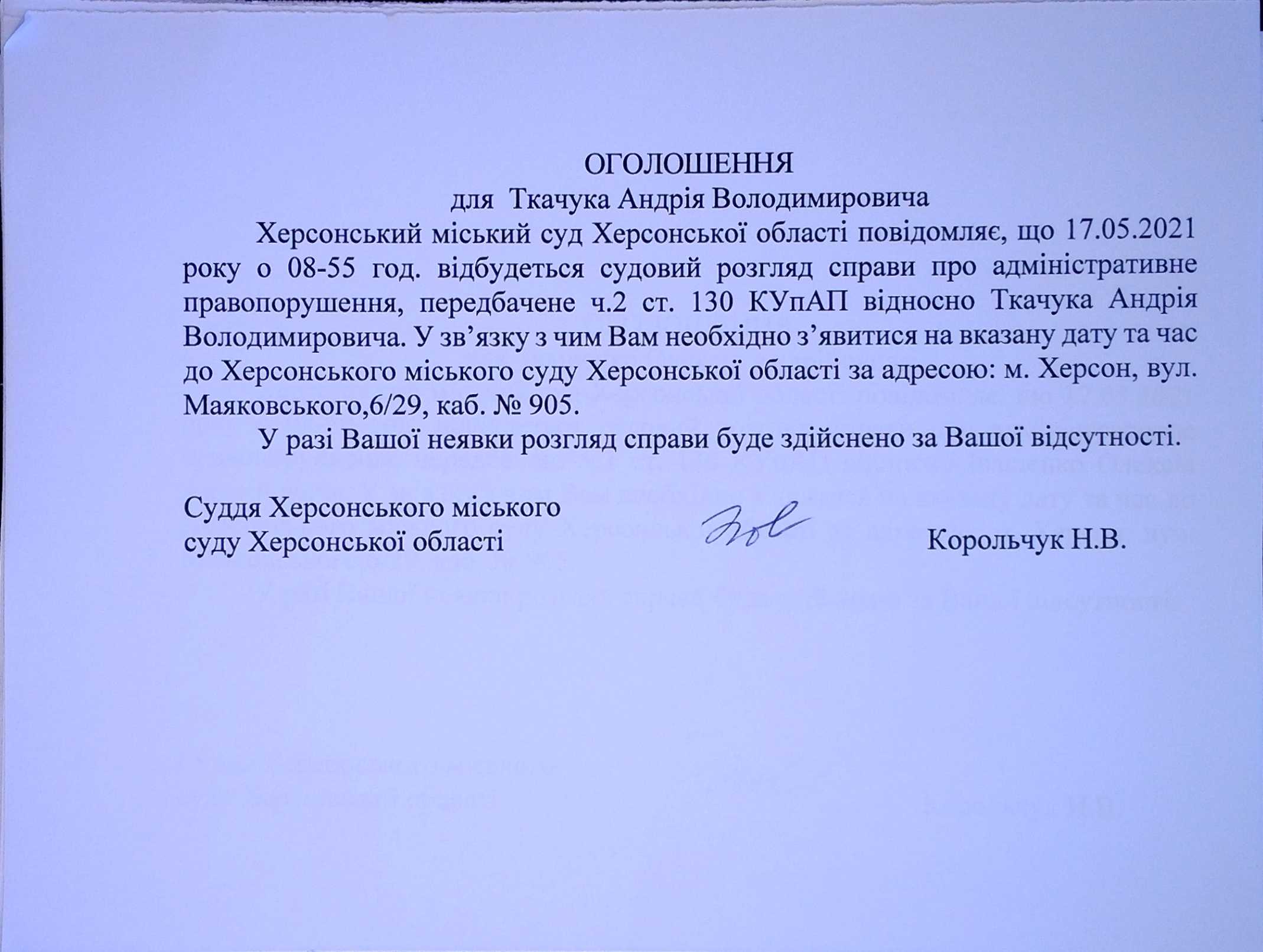 ОГОЛОШЕННЯ ПРО ВИКЛИК ДО СУДУ