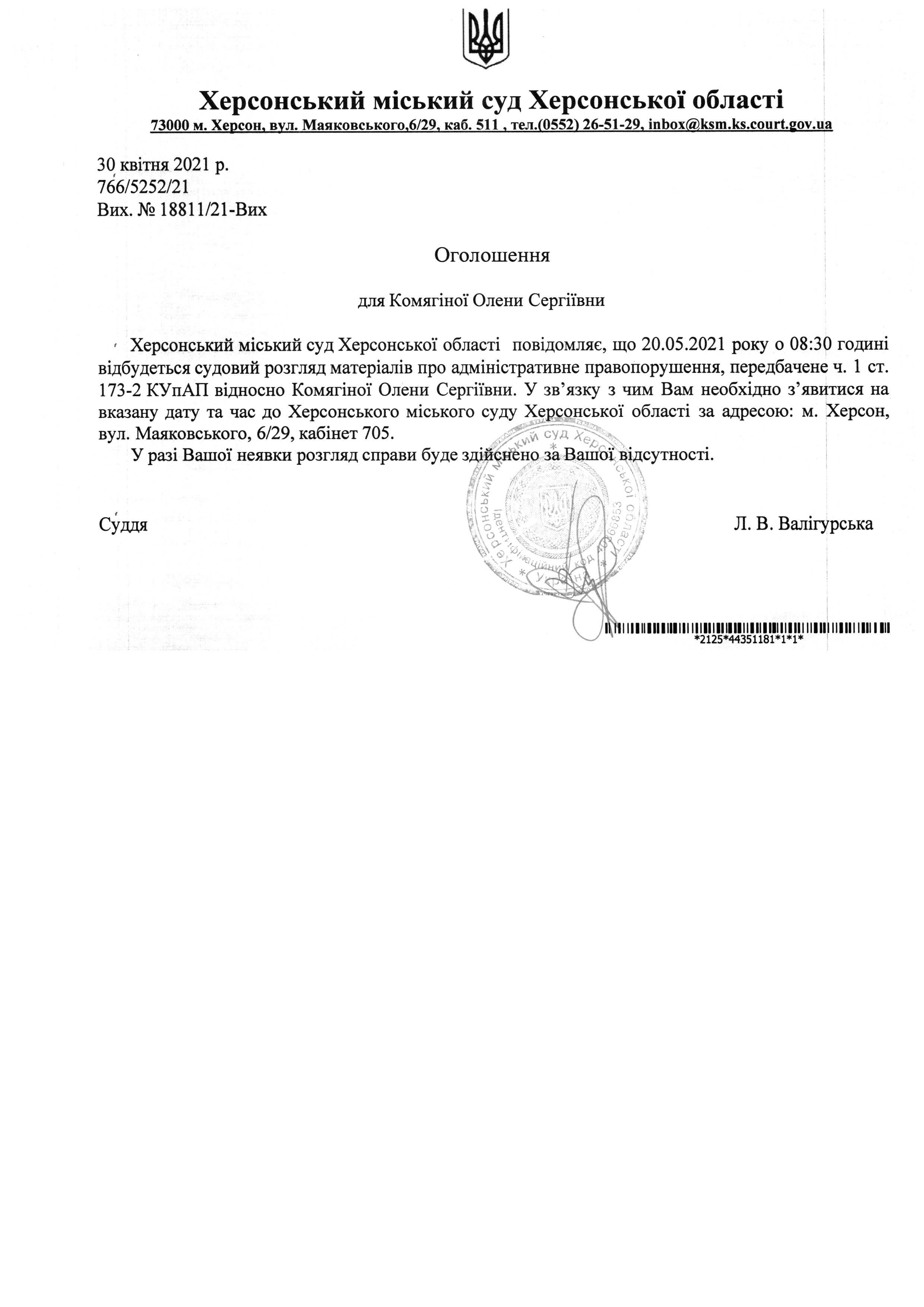 ОГОЛОШЕННЯ ПРО ВИКЛИК ДО СУДУ