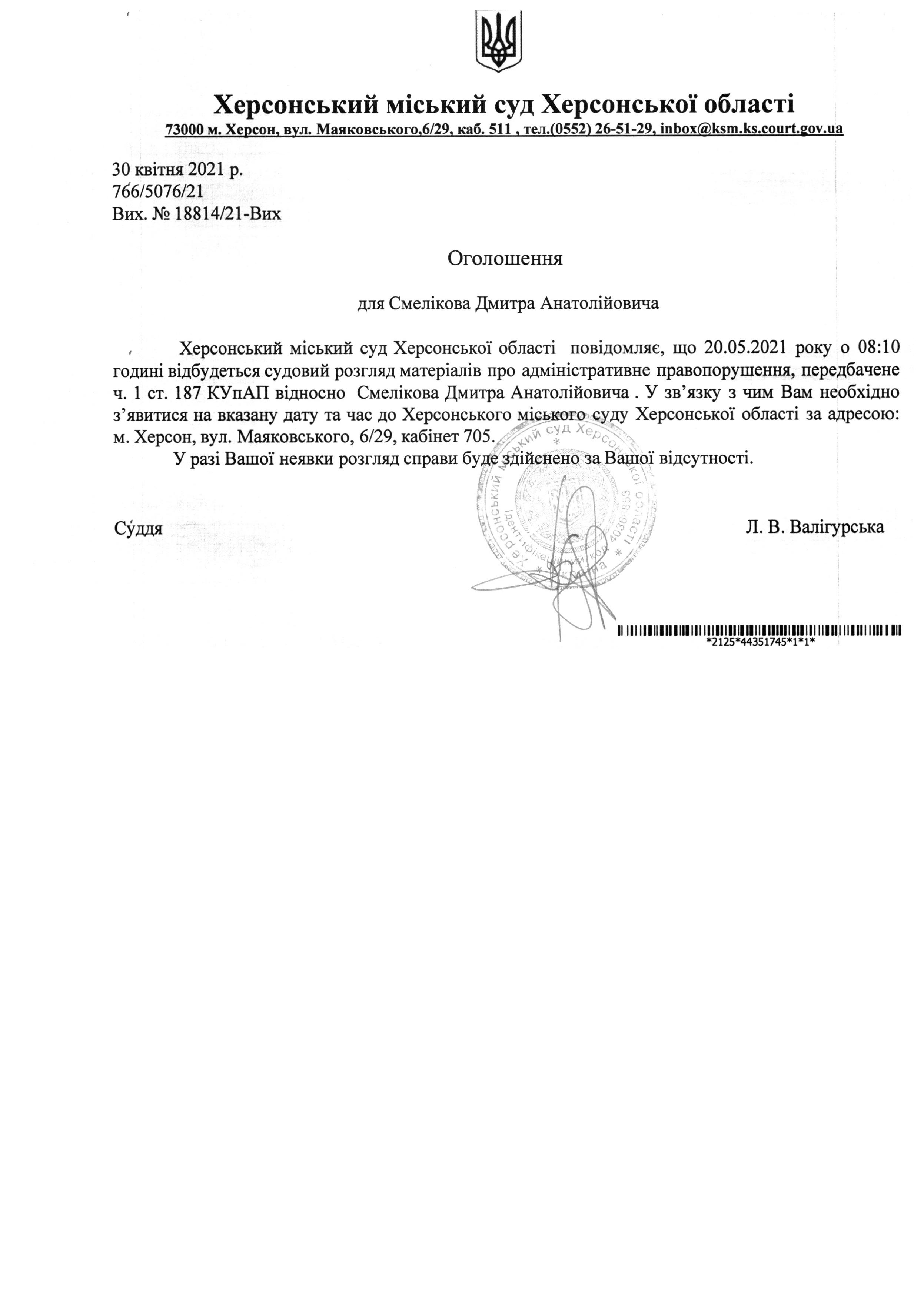 ОГОЛОШЕННЯ ПРО ВИКЛИК ДО СУДУ