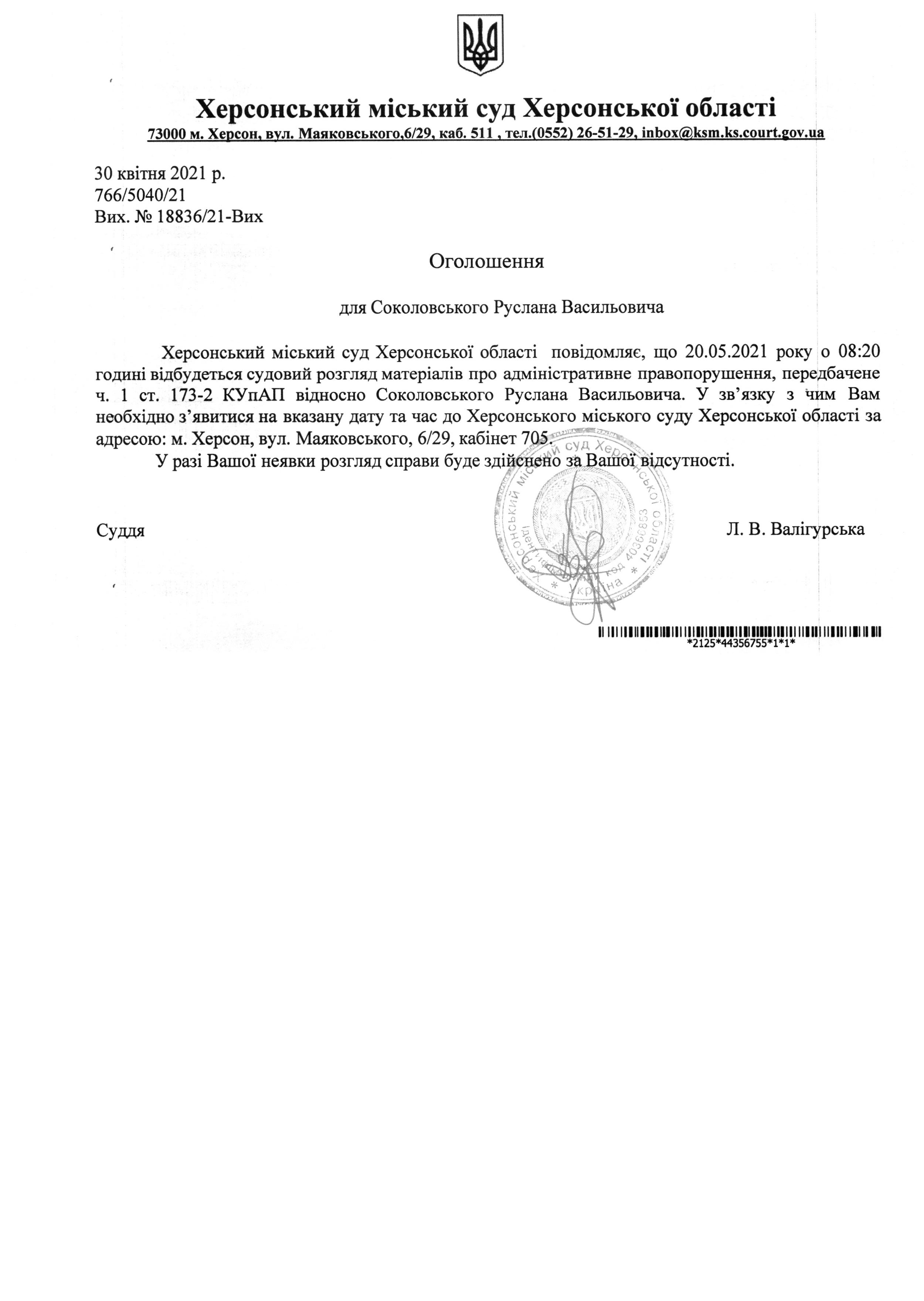 ОГОЛОШЕННЯ ПРО ВИКЛИК ДО СУДУ