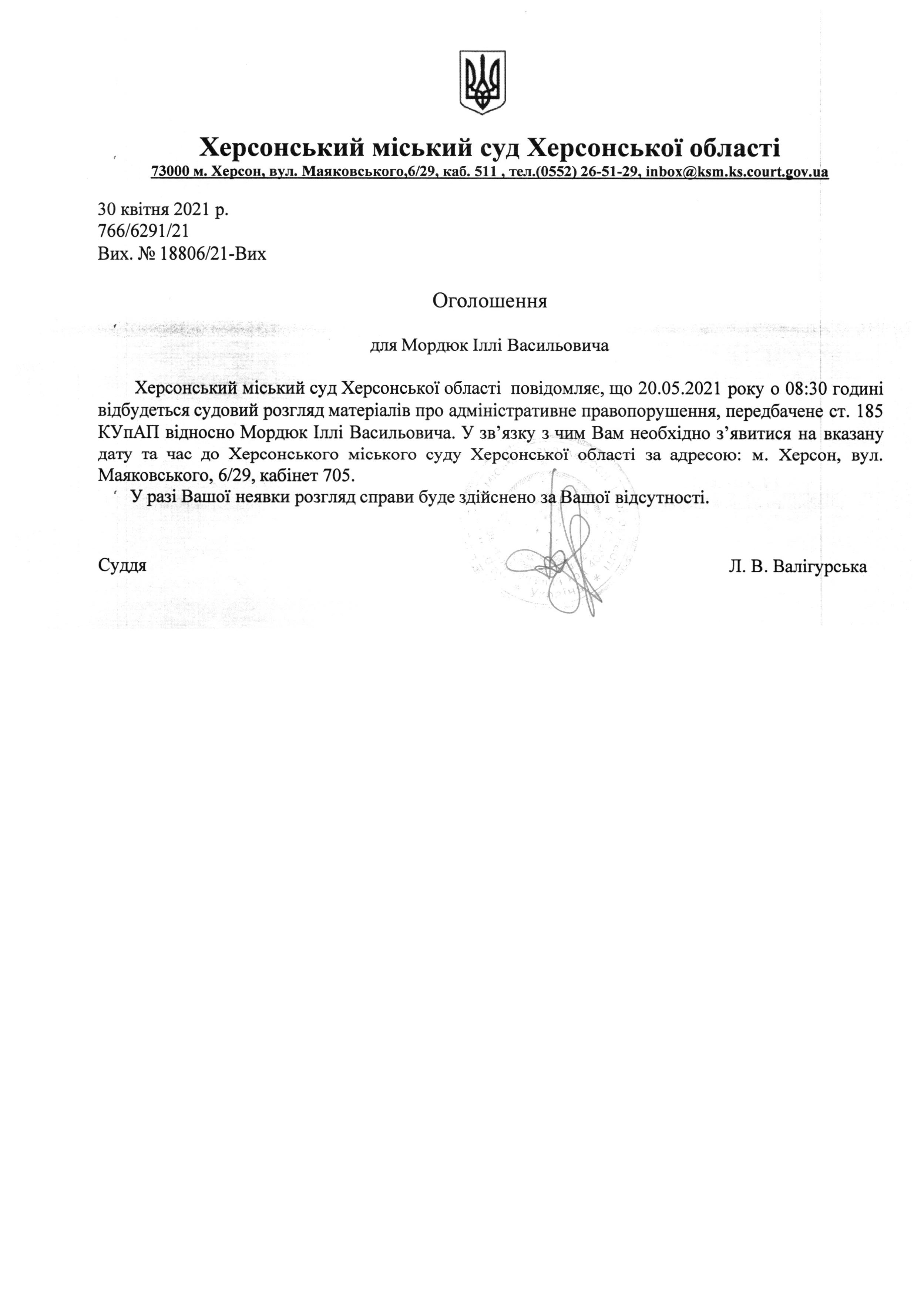 ОГОЛОШЕННЯ ПРО ВИКЛИК ДО СУДУ