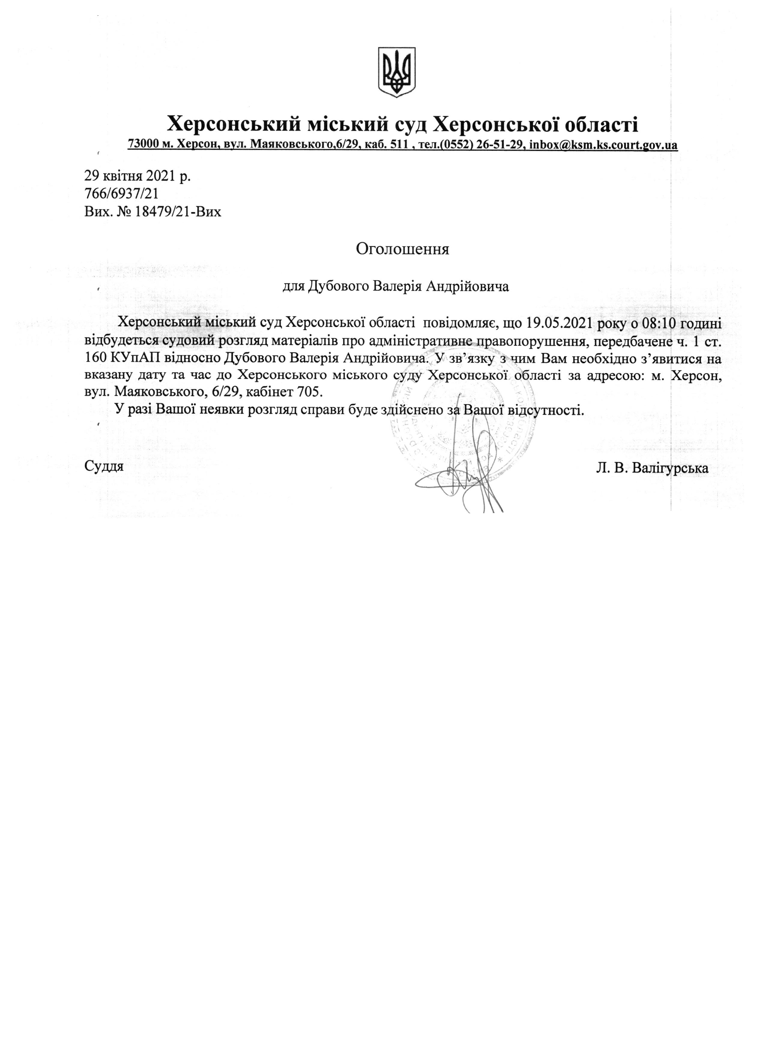 ОГОЛОШЕННЯ ПРО ВИКЛИК ДО СУДУ