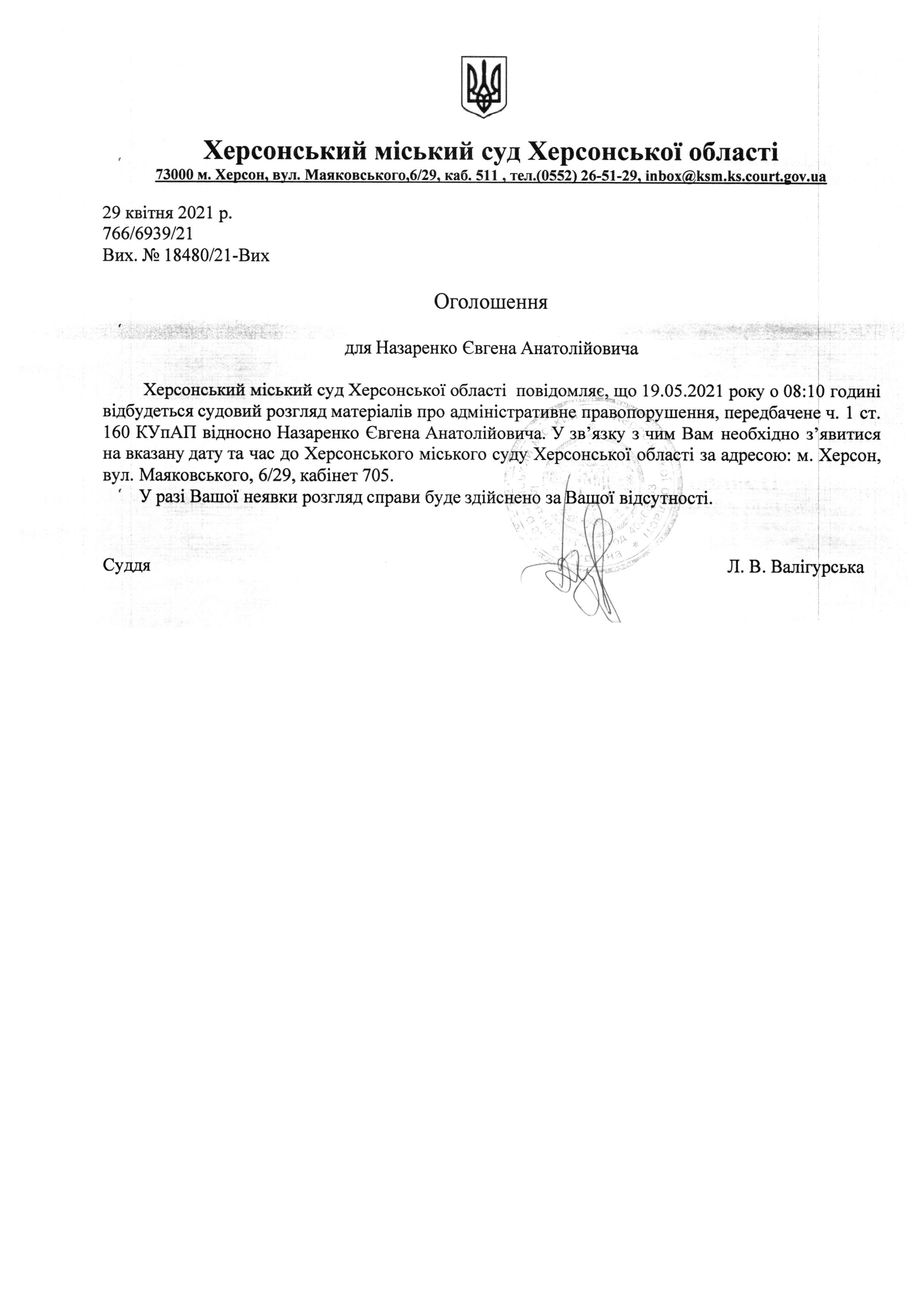 ОГОЛОШЕННЯ ПРО ВИКЛИК ДО СУДУ