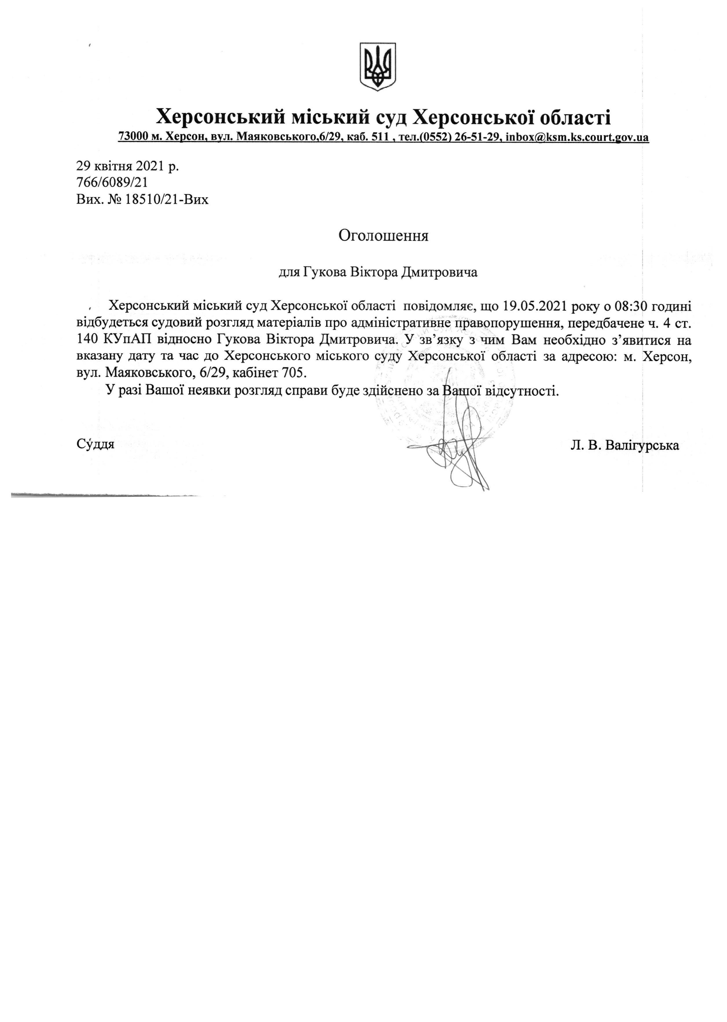 ОГОЛОШЕННЯ ПРО ВИКЛИК ДО СУДУ