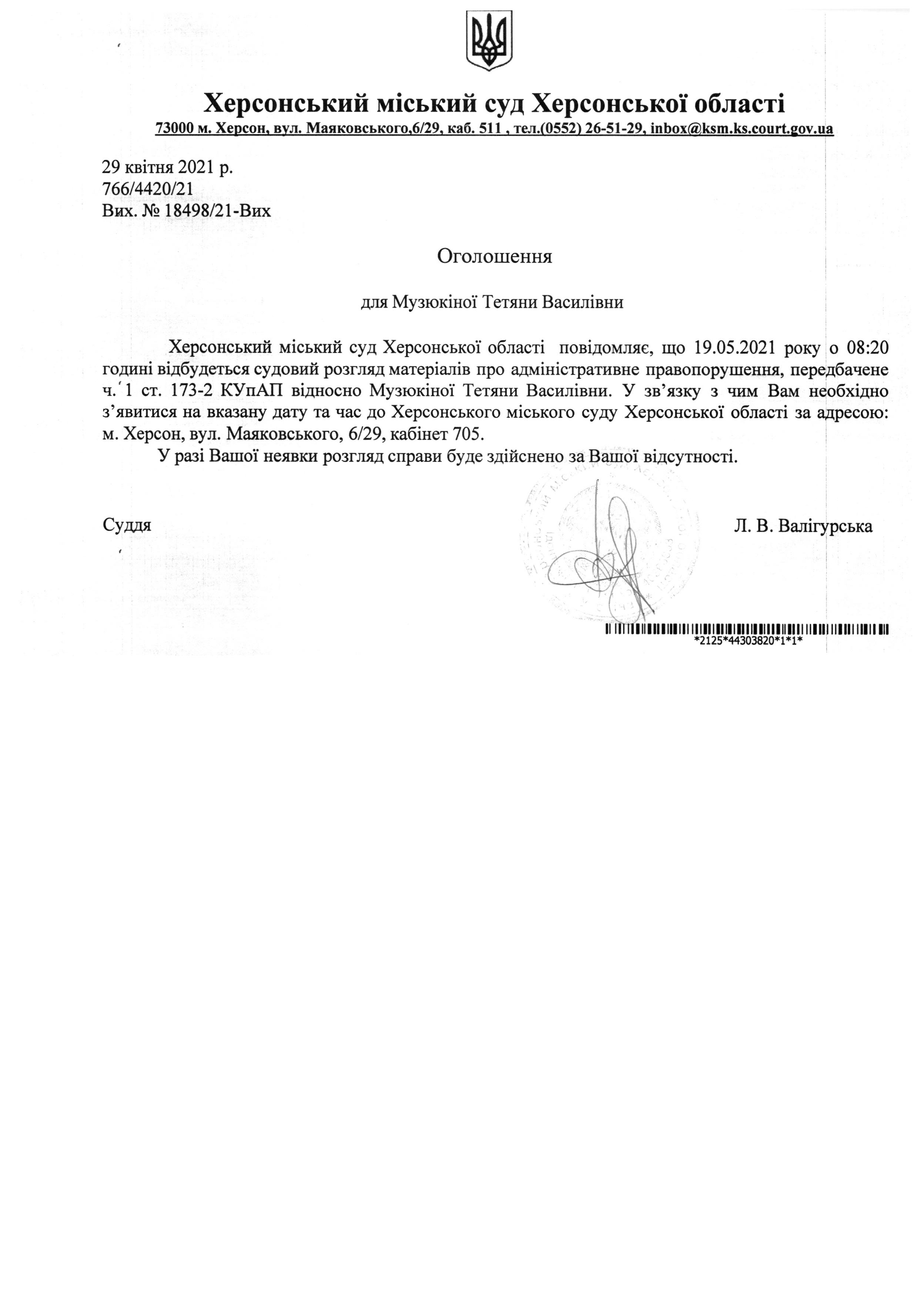 ОГОЛОШЕННЯ ПРО ВИКЛИК ДО СУДУ