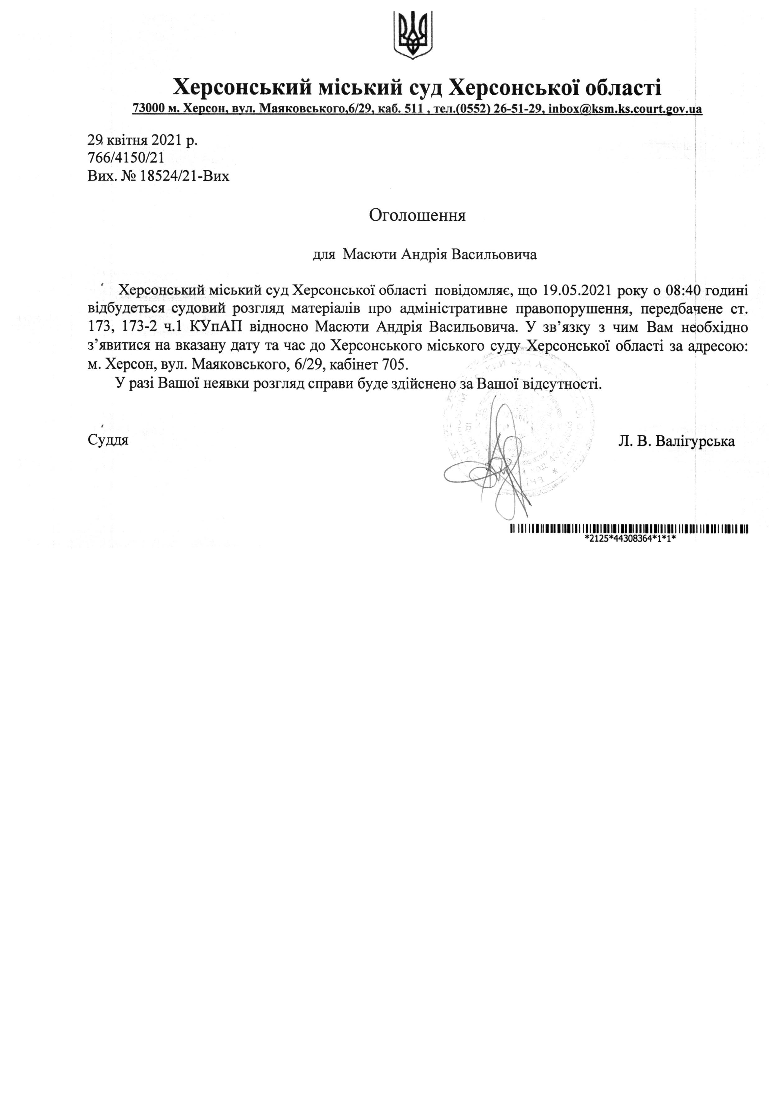 ОГОЛОШЕННЯ ПРО ВИКЛИК ДО СУДУ
