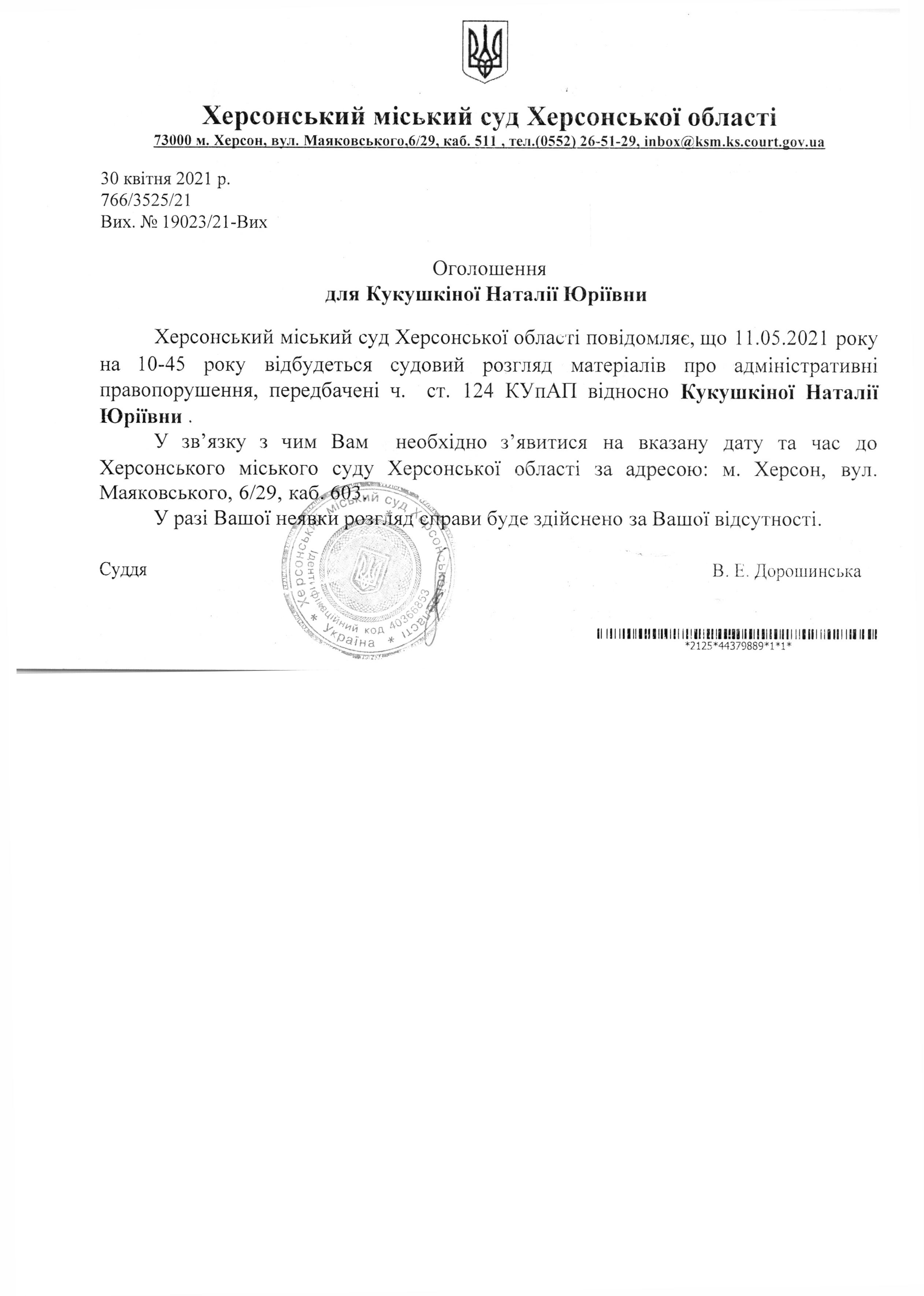 Оголошення для Кукушкіної Наталії Юріївни