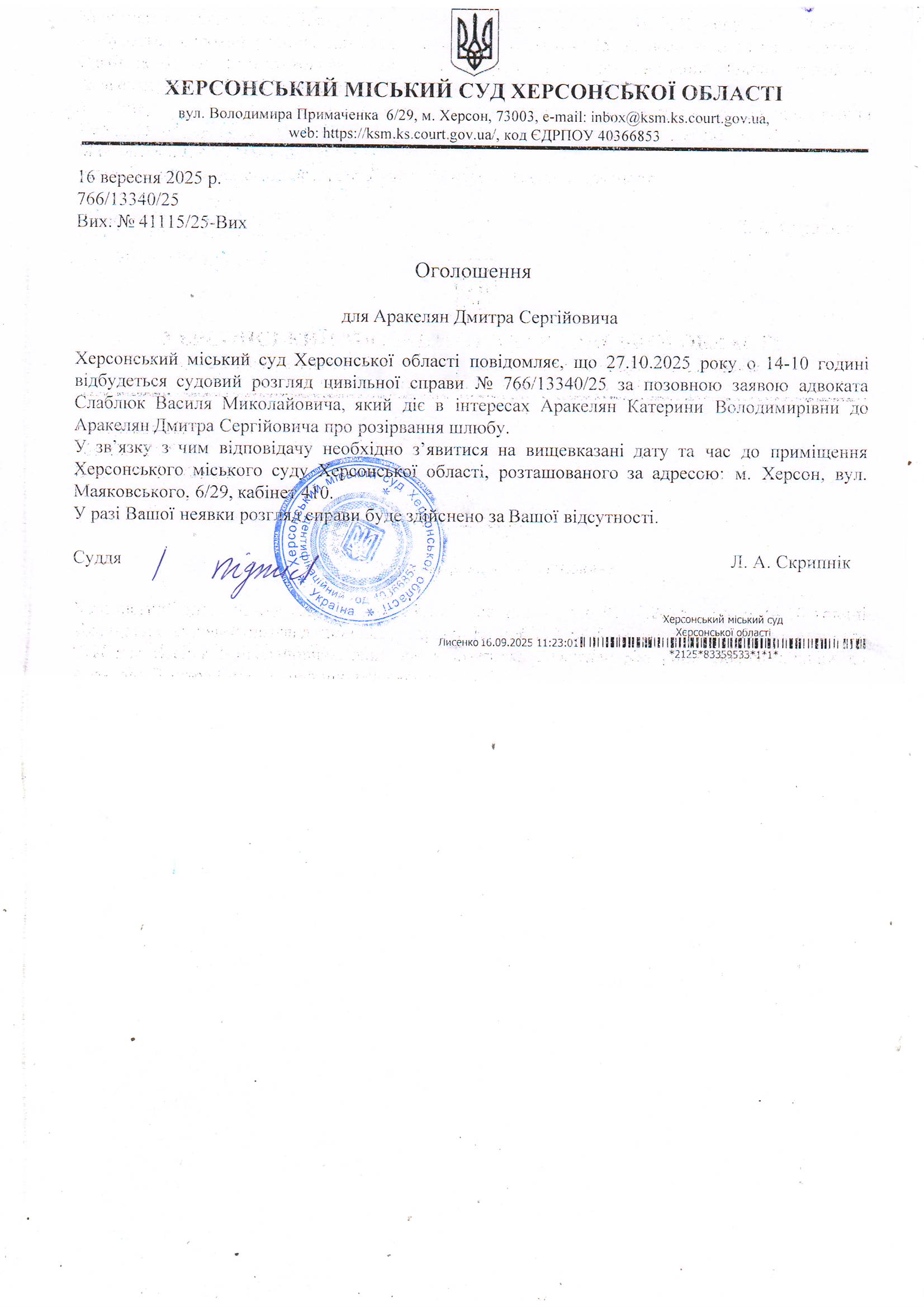 Оголошення для Аракеляна Дмитра Сергійовича