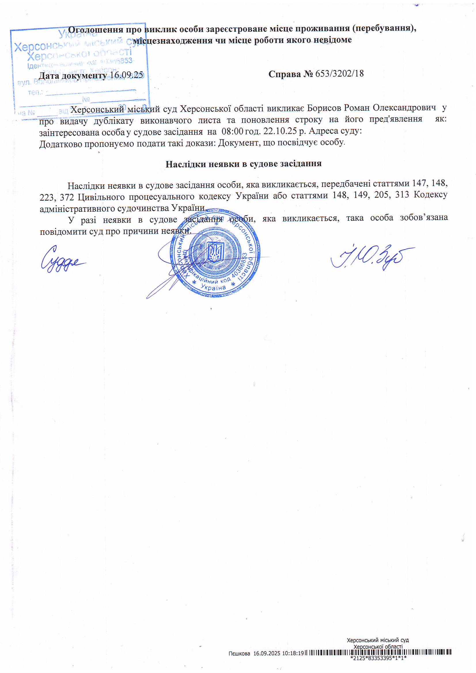 Оголошення для Борисова Романа Олександровича
