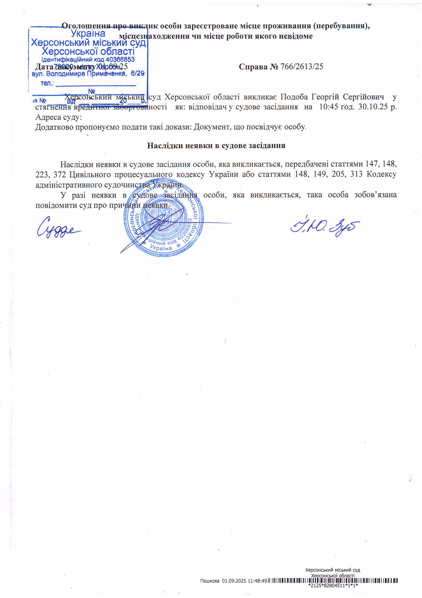 Оголошення для Подоби Георгія Сергійовича