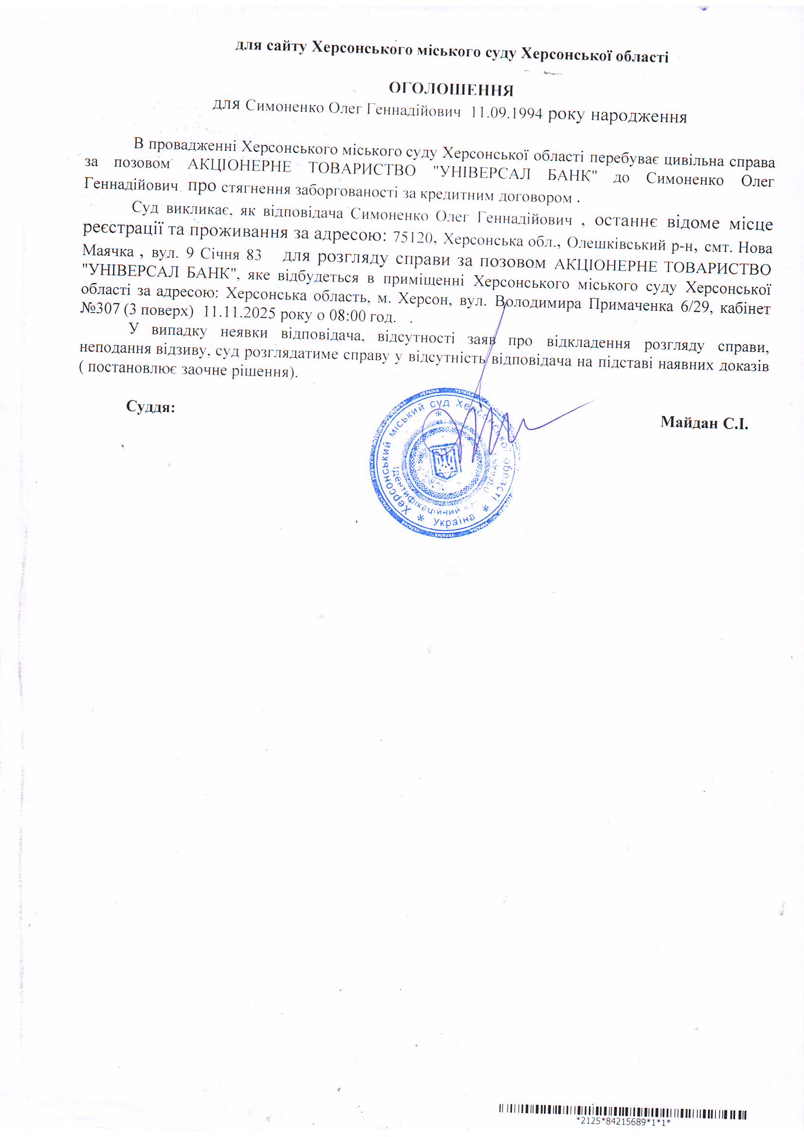 ОГОЛОШЕННЯ ПРО ВИКЛИК ДО СУДУ