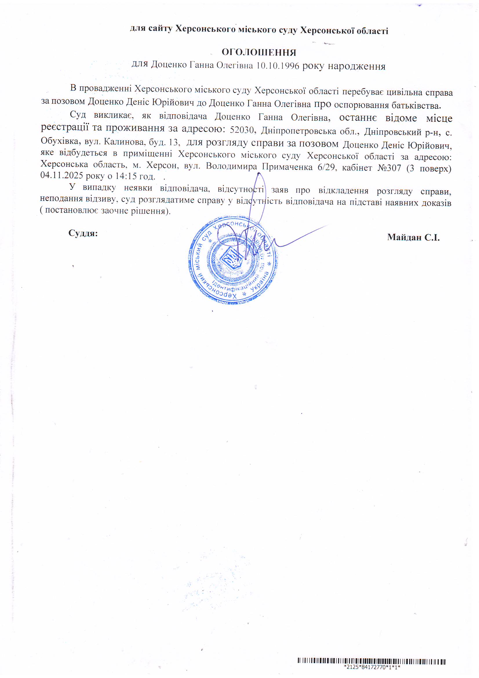 ОГОЛОШЕННЯ ПРО ВИКЛИК ДО СУДУ