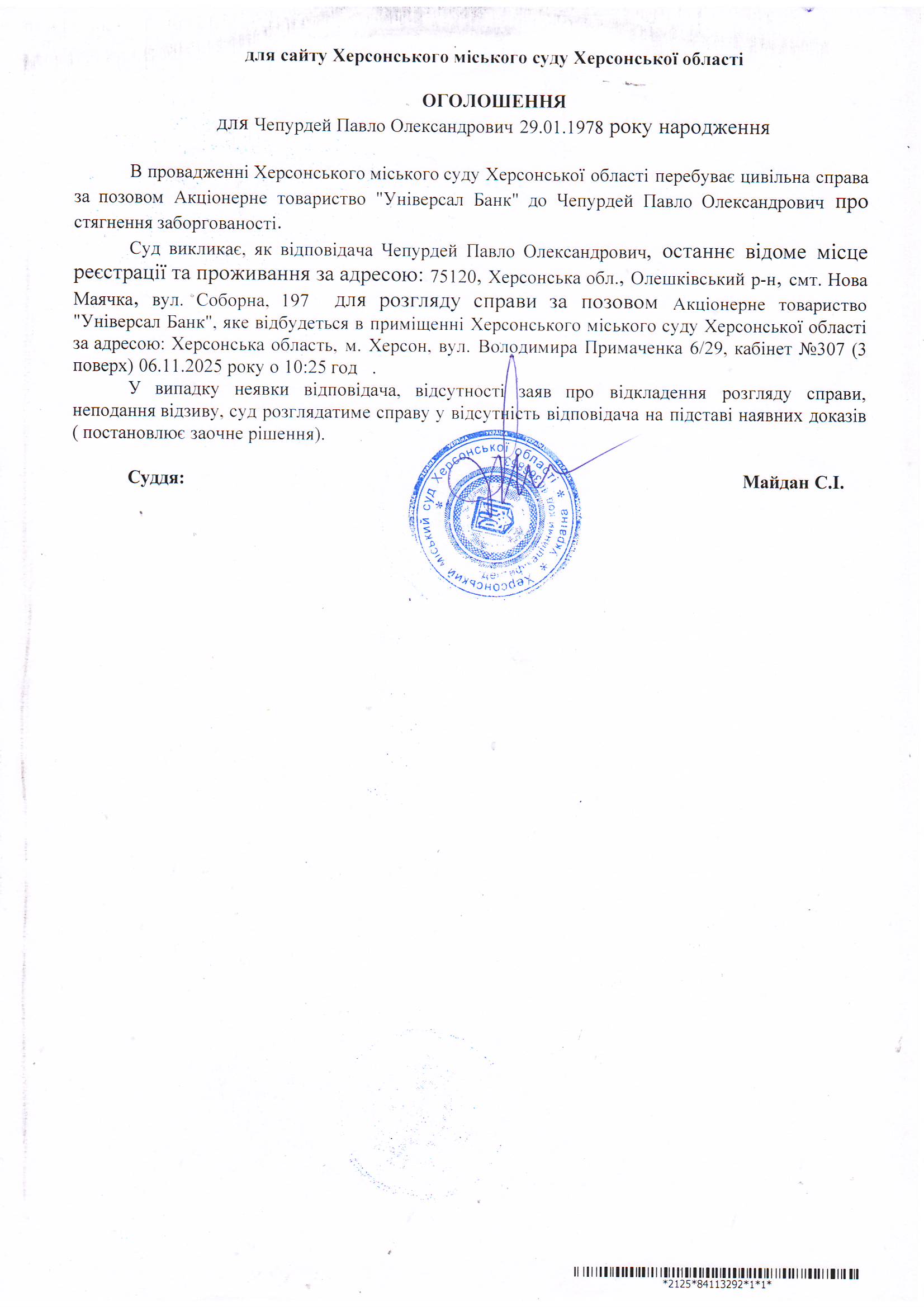 ОГОЛОШЕННЯ ПРО ВИКЛИК ДО СУДУ