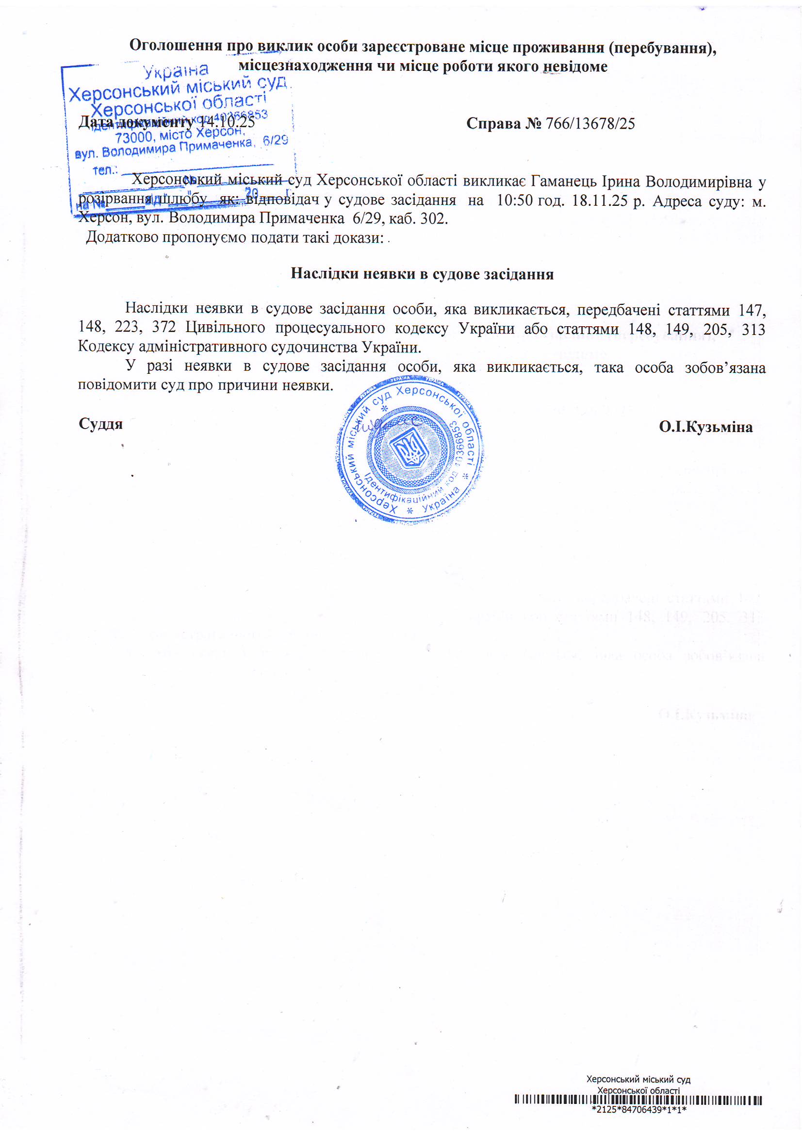 Інформація про місцезнаходження Херсонського міського суду Херсонської області