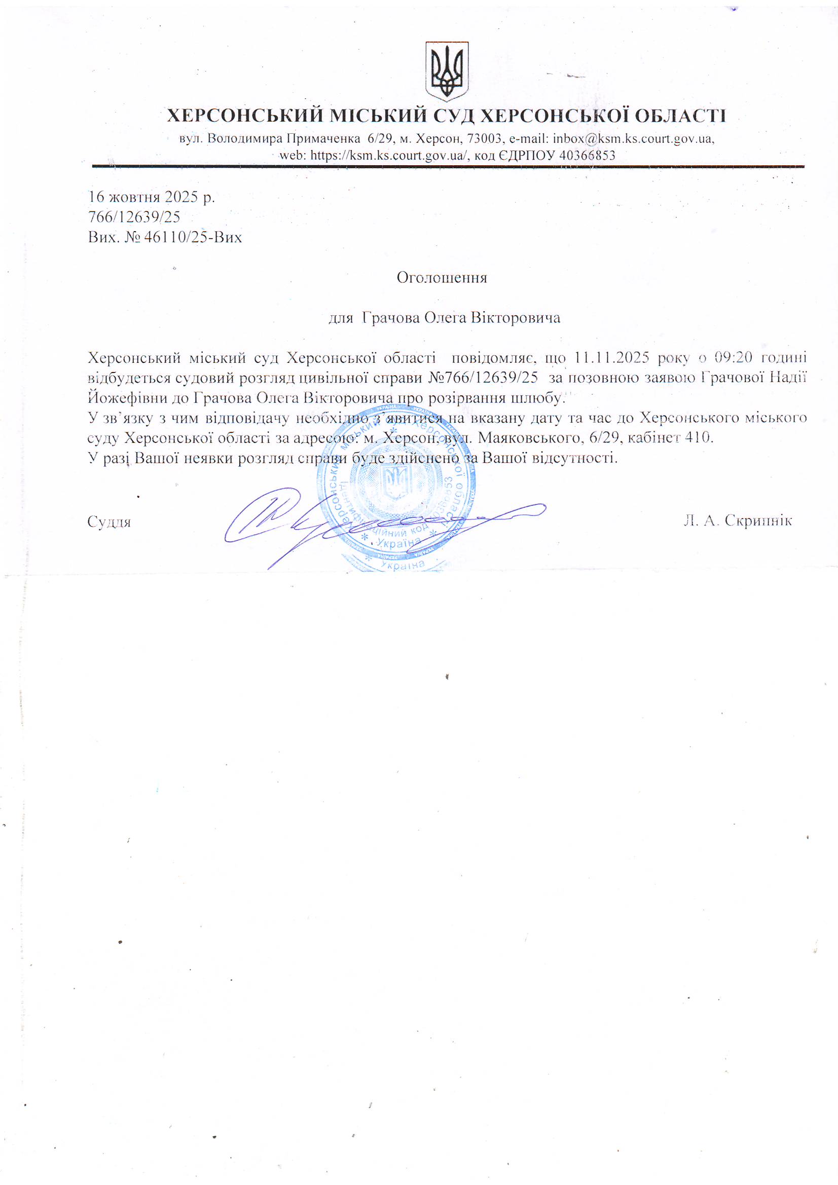 ОГОЛОШЕННЯ ПРО ВИКЛИК ДО СУДУ