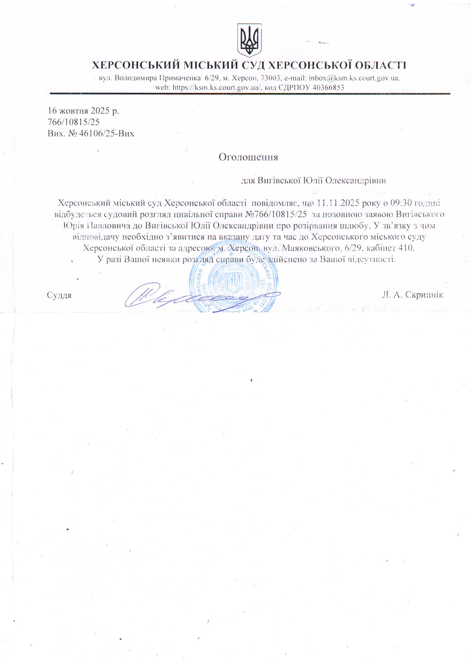 ОГОЛОШЕННЯ ПРО ВИКЛИК ДО СУДУ