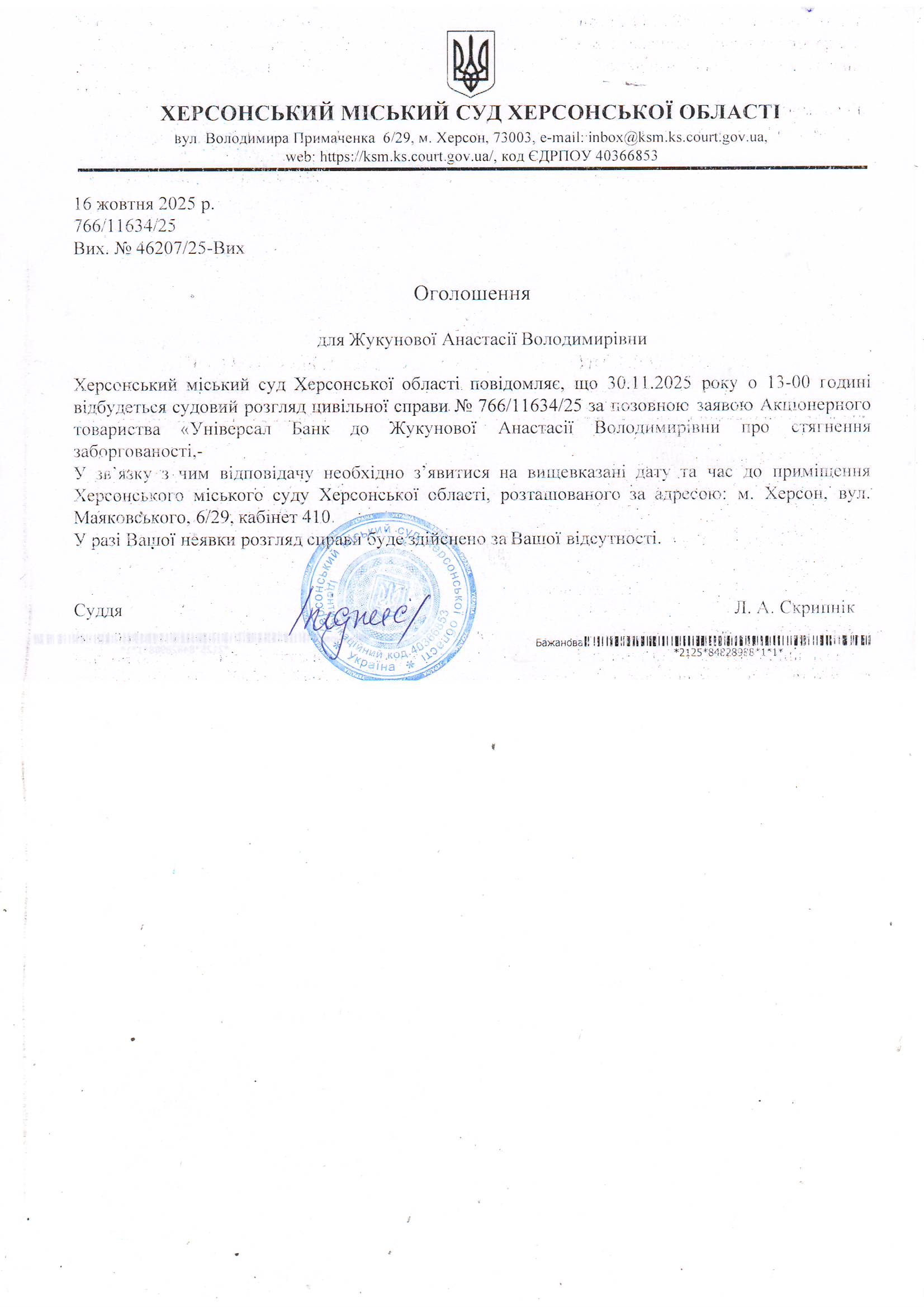 ОГОЛОШЕННЯ ПРО ВИКЛИК ДО СУДУ