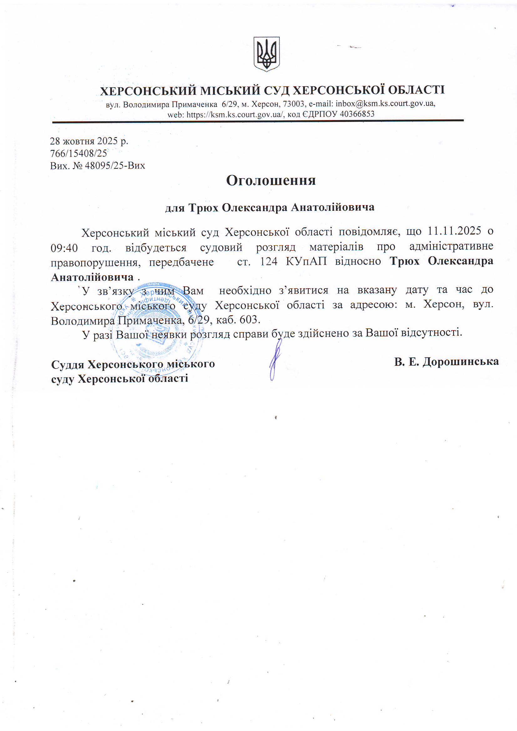 ОГОЛОШЕННЯ ПРО ВИКЛИК ДО СУДУ