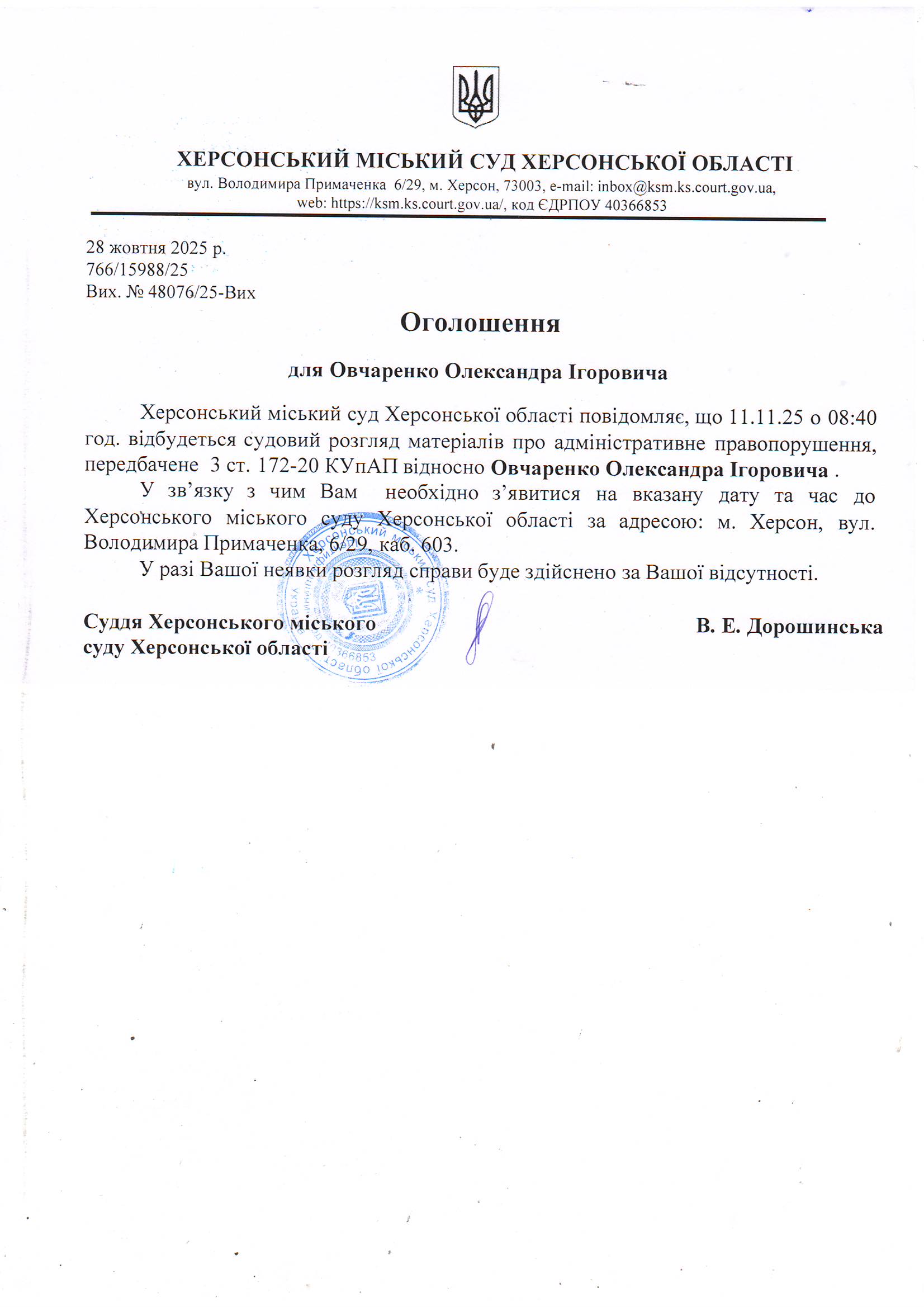 ОГОЛОШЕННЯ ПРО ВИКЛИК ДО СУДУ