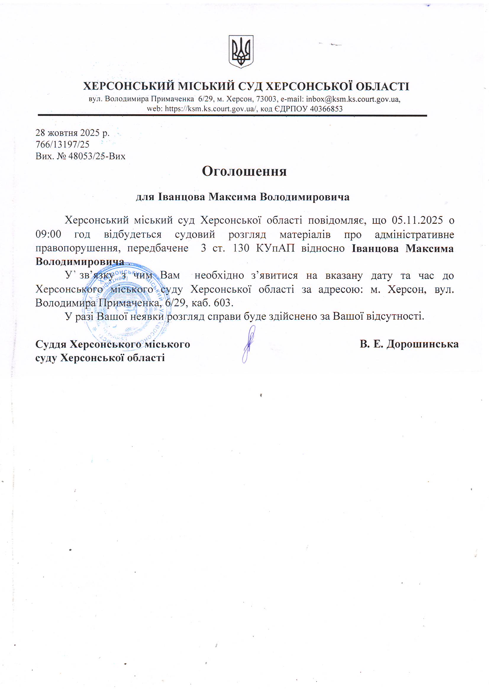ОГОЛОШЕННЯ ПРО ВИКЛИК ДО СУДУ