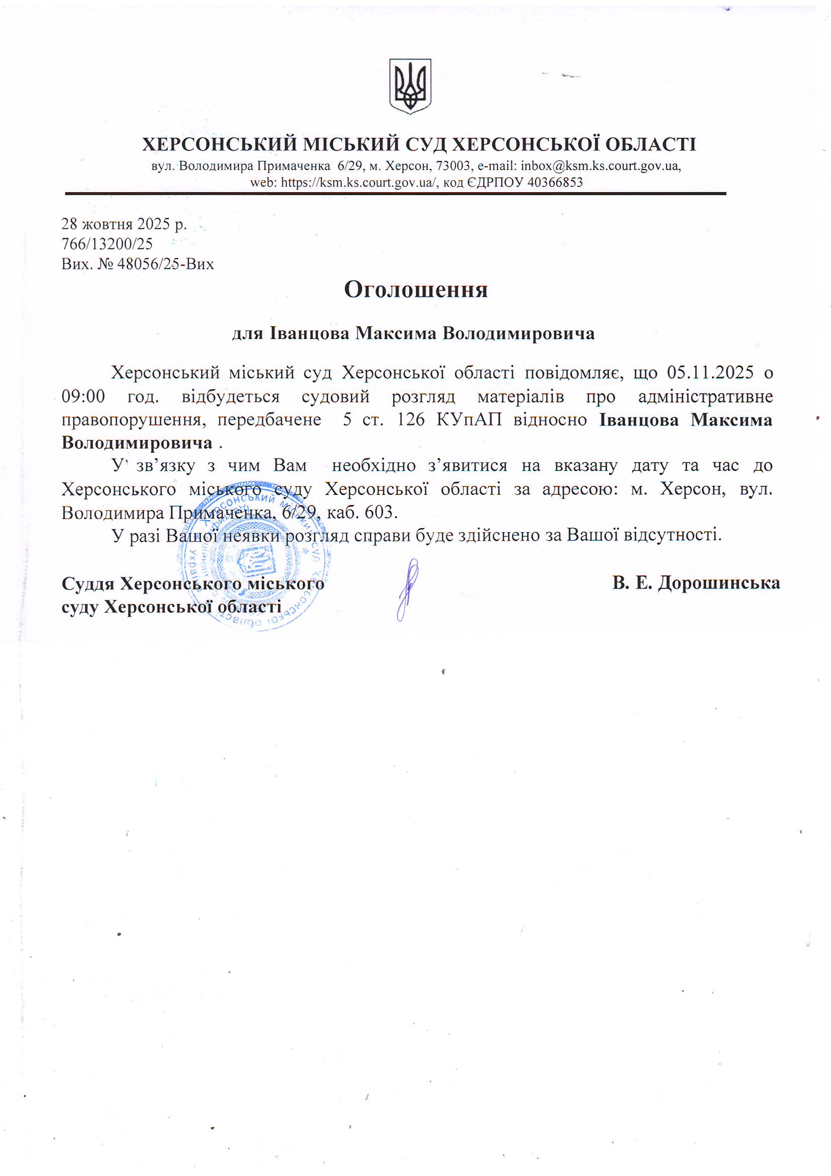 ОГОЛОШЕННЯ ПРО ВИКЛИК ДО СУДУ